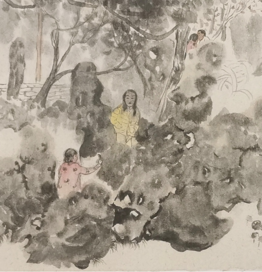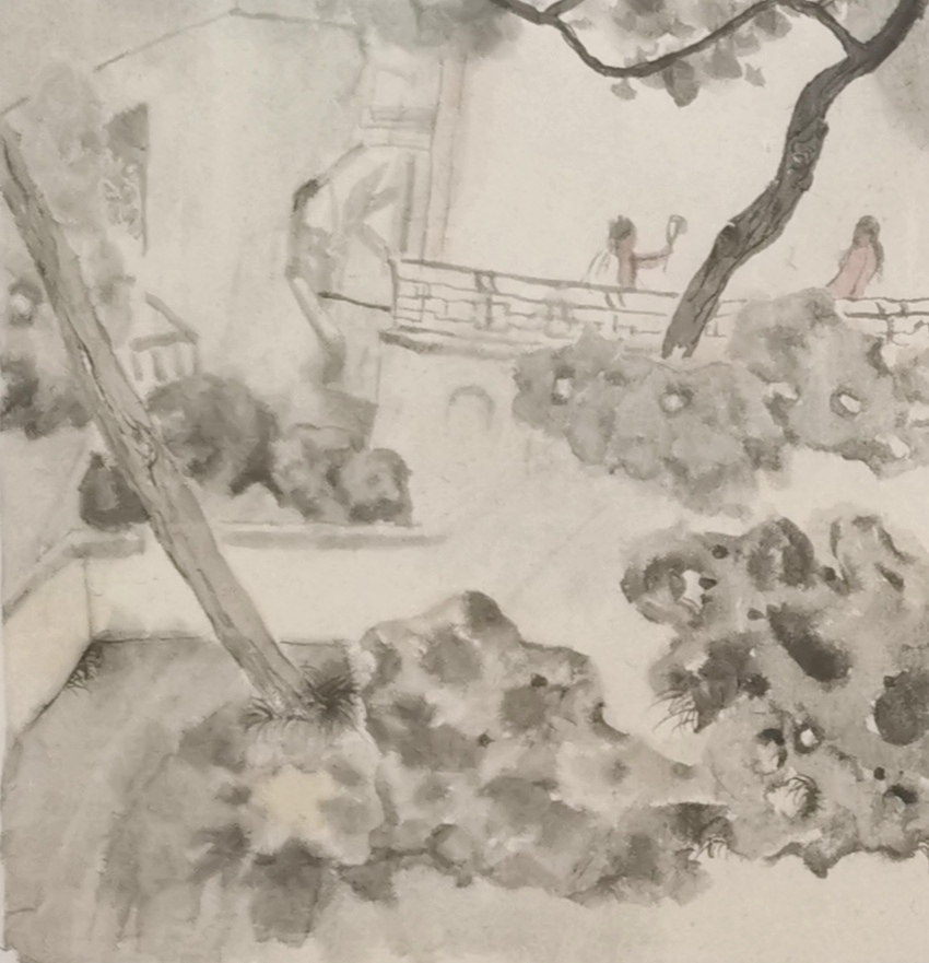 《游园系列》之二 纸本水墨 68cm×68cm 2020年