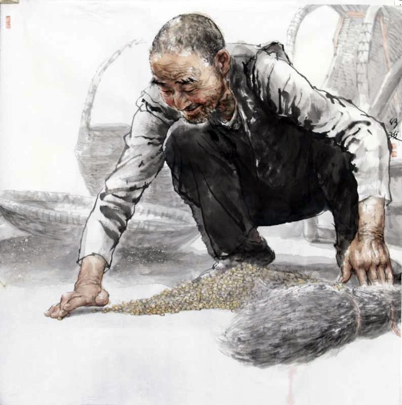 《粒粒皆辛苦》 中国画 68cm×68cm 2020年