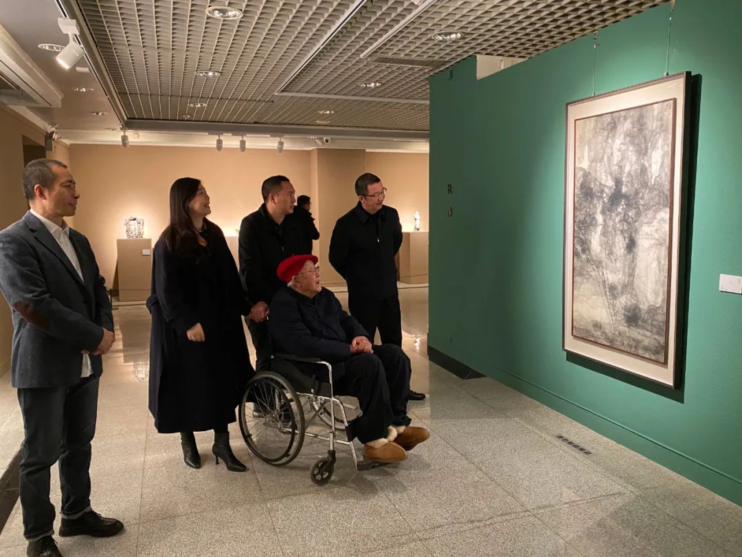 周韶华(右二)在院领导陪同下观展