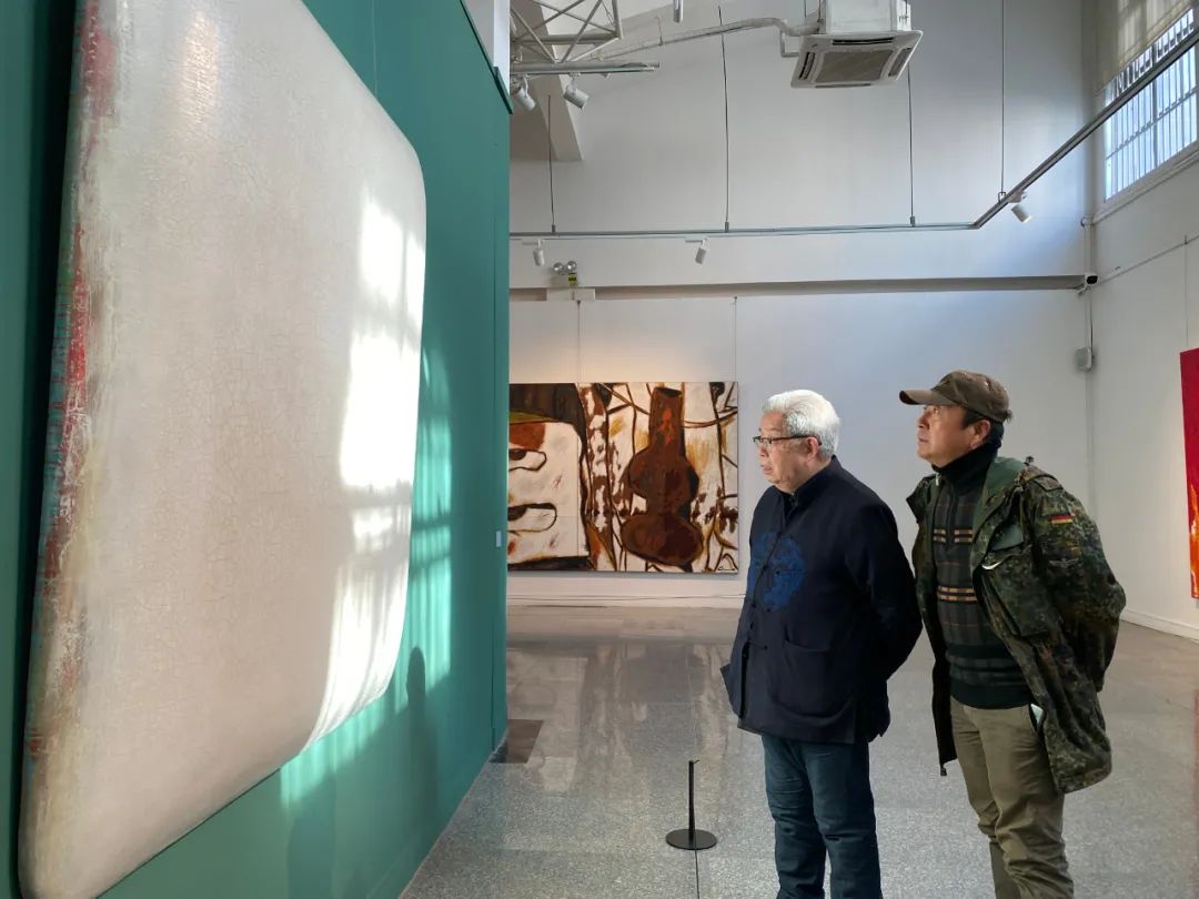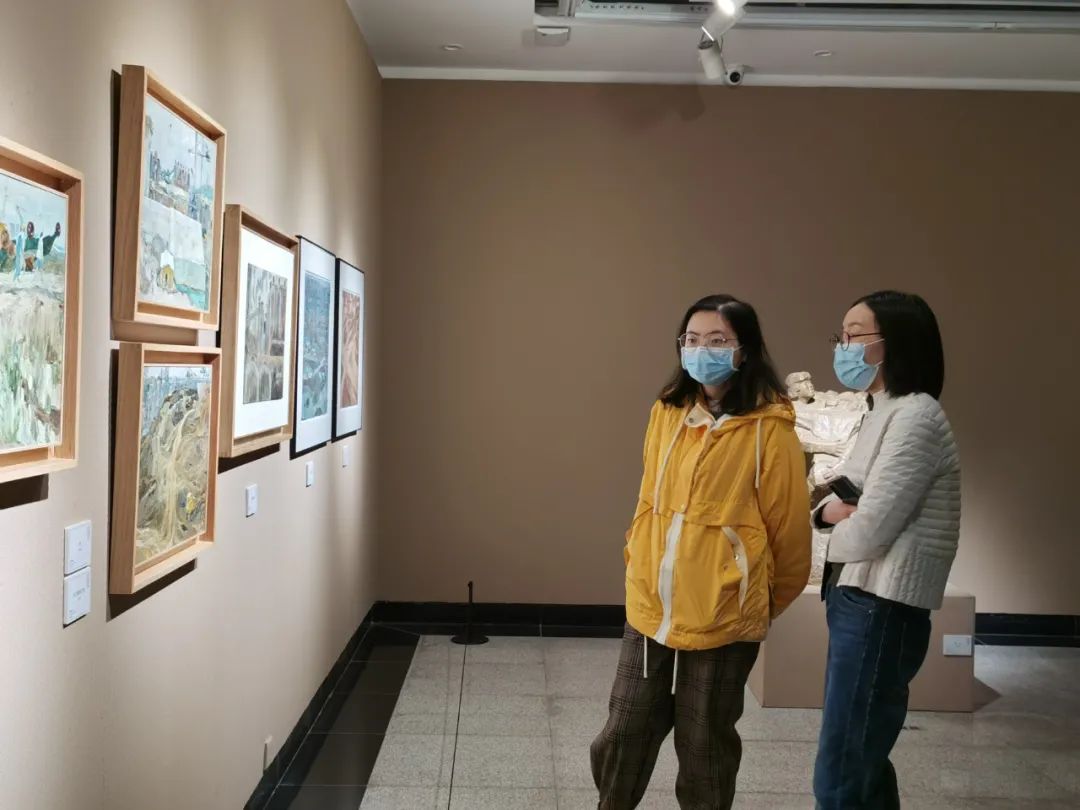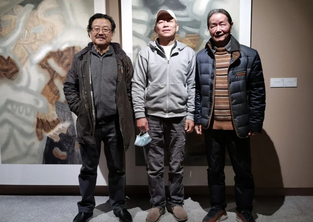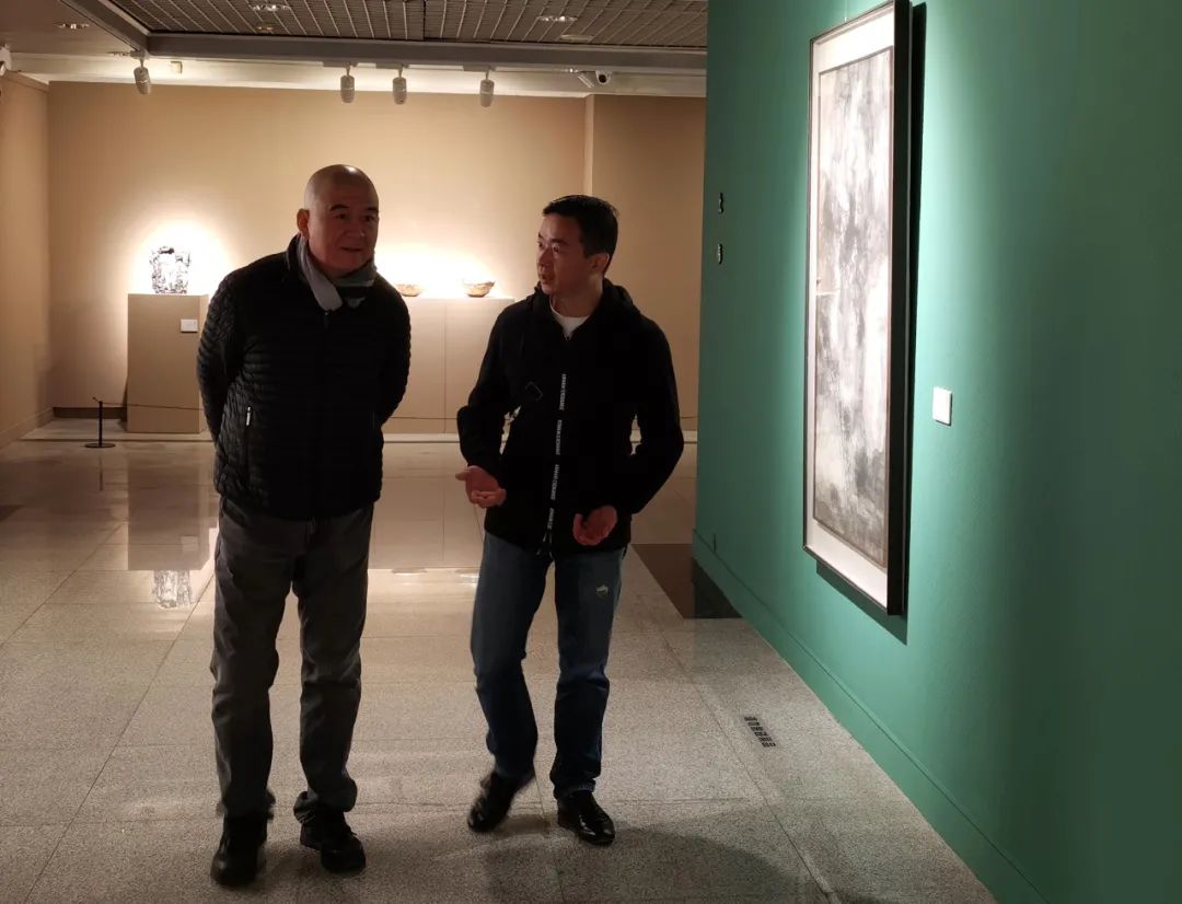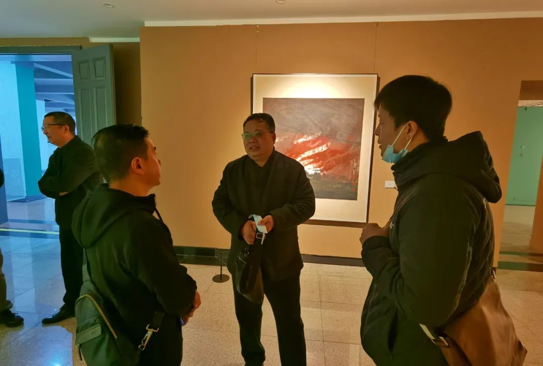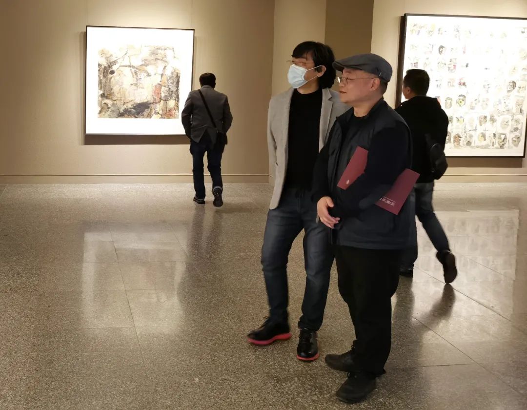 冀少峰(左一)、陈勇劲在观展现场