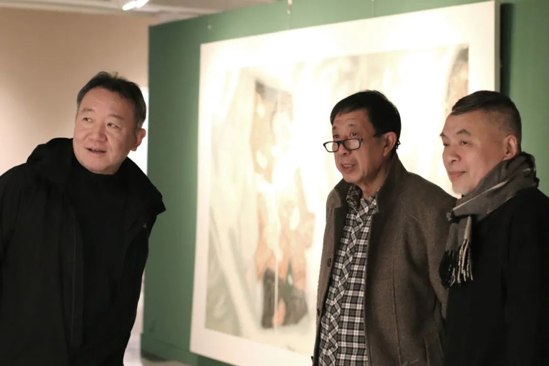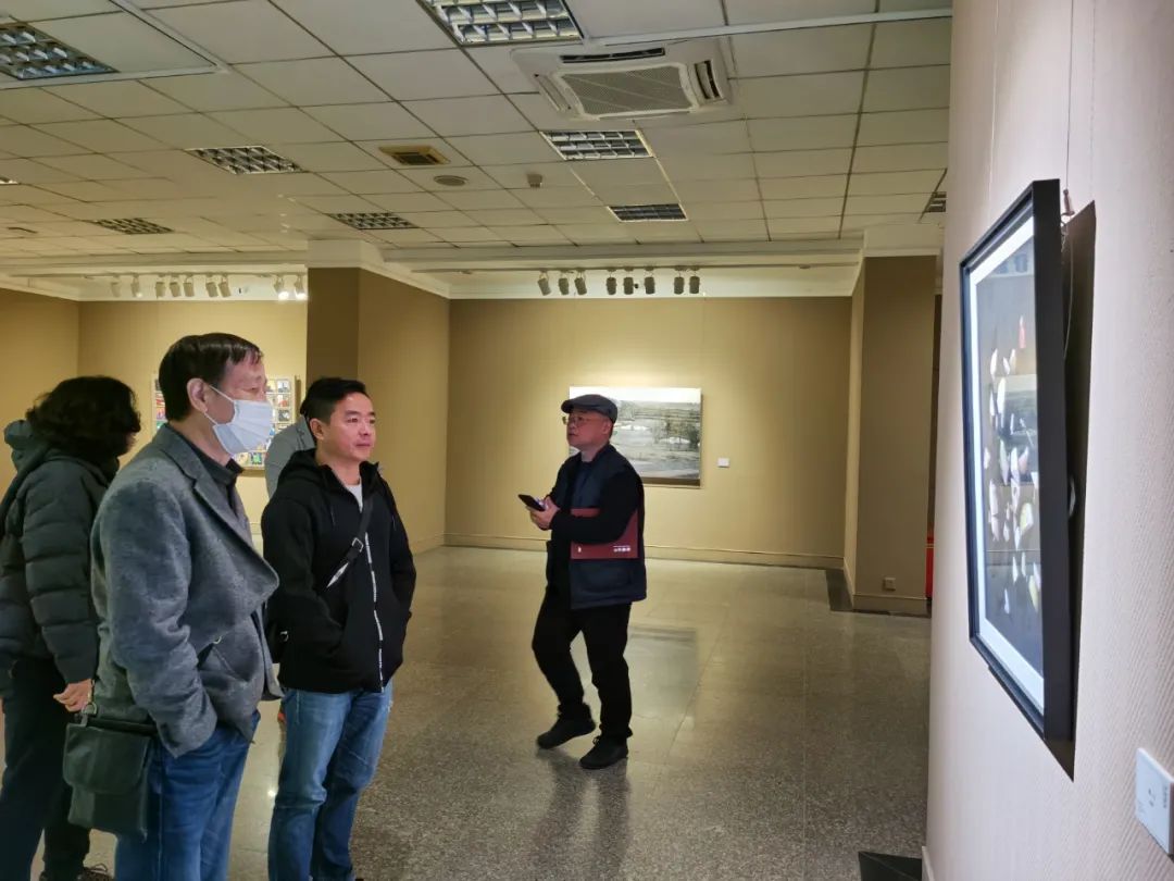 孙振华(右一)、樊枫(右二)、肖丰在观展现场