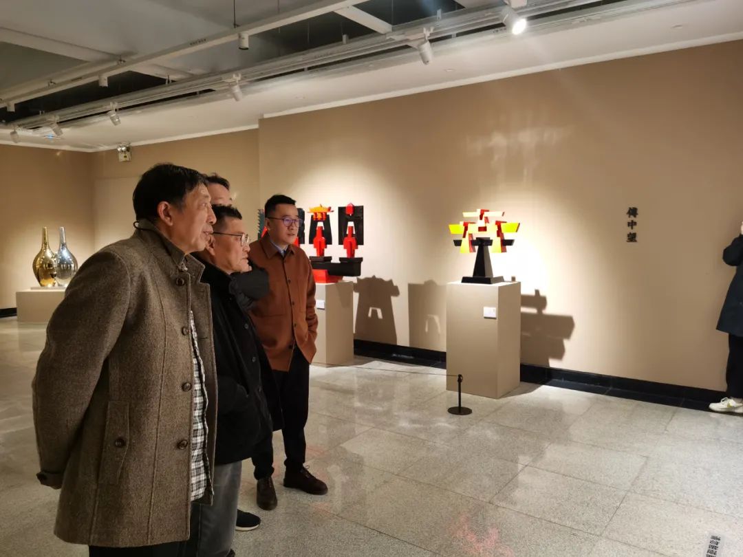 樊枫(左一)、傅中望(左二)、张杰在观展现场