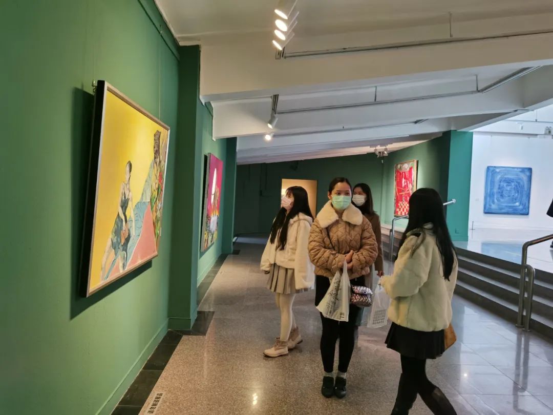 鲁虹(左二)在观展现场