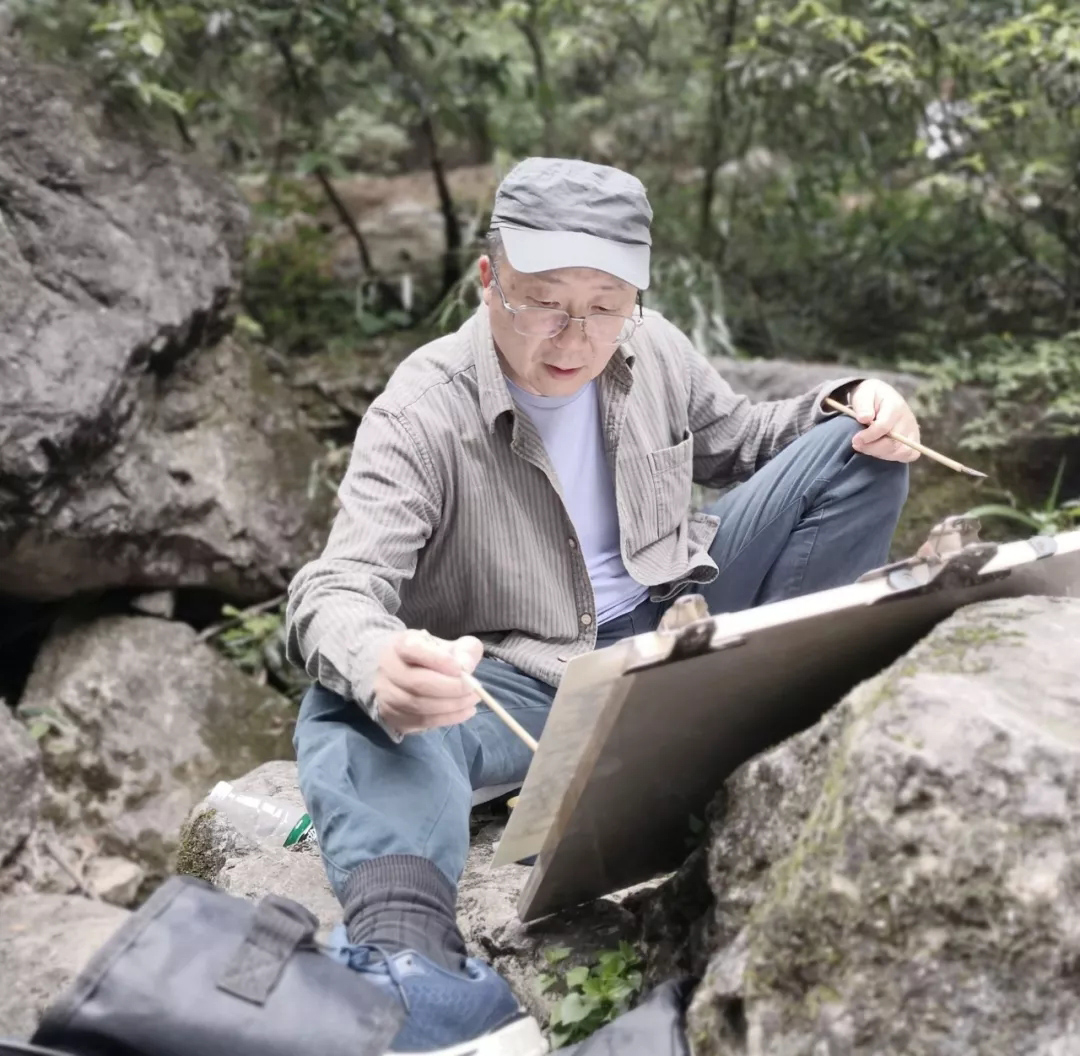 △湖北省美术院中国画创作室主任柳秀林写生现场