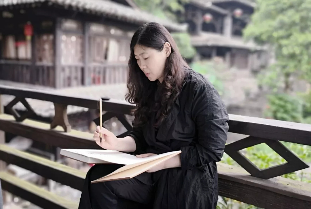 △湖北省美术院谢晓虹副院长写生现场