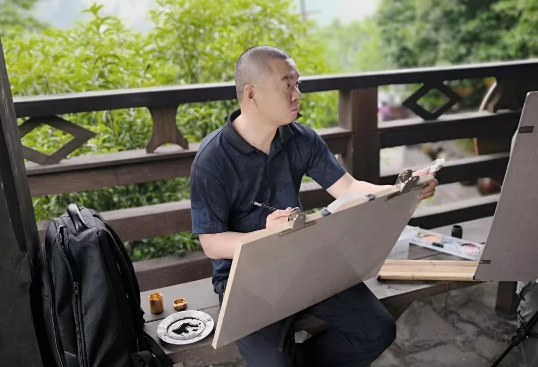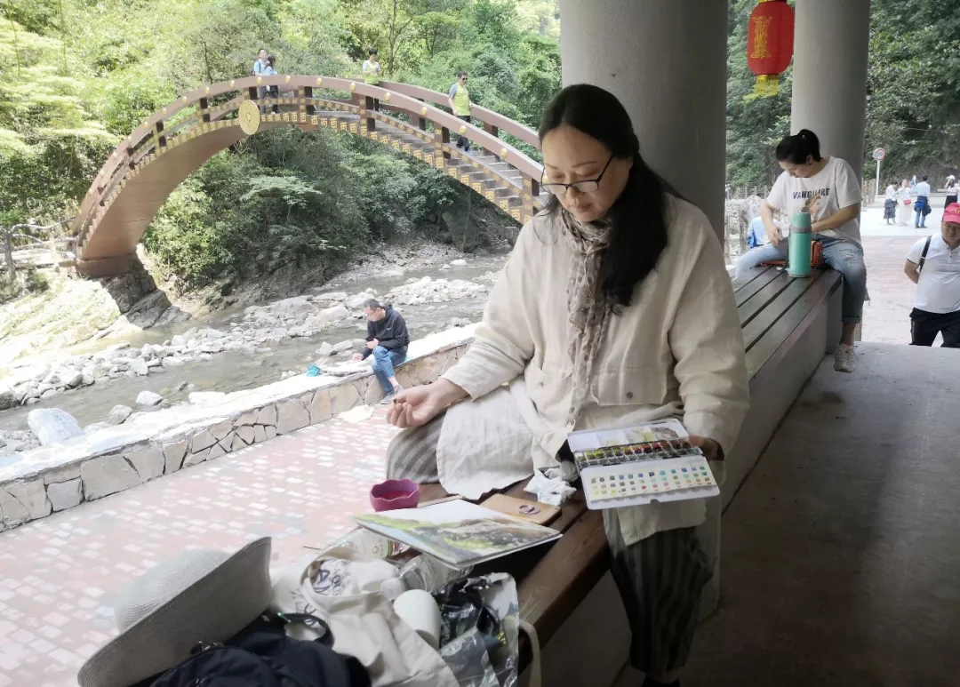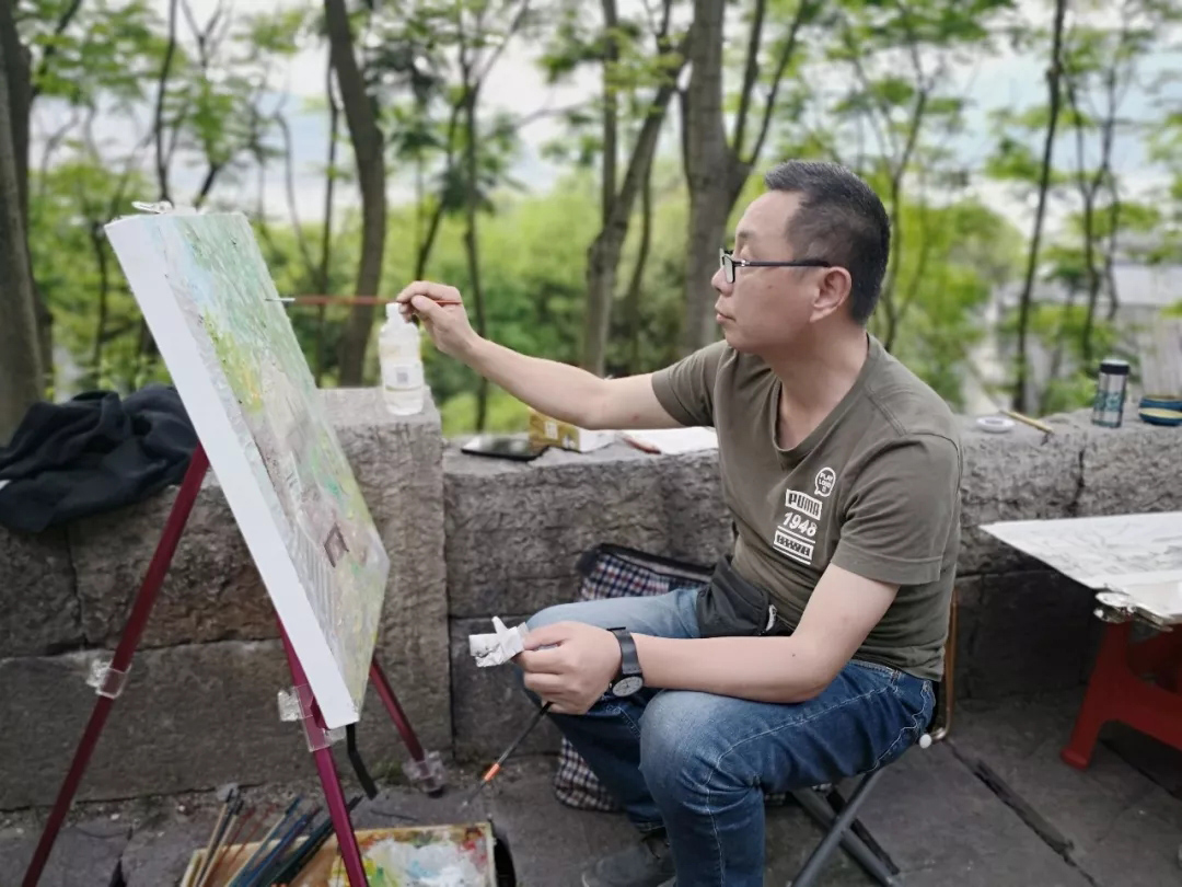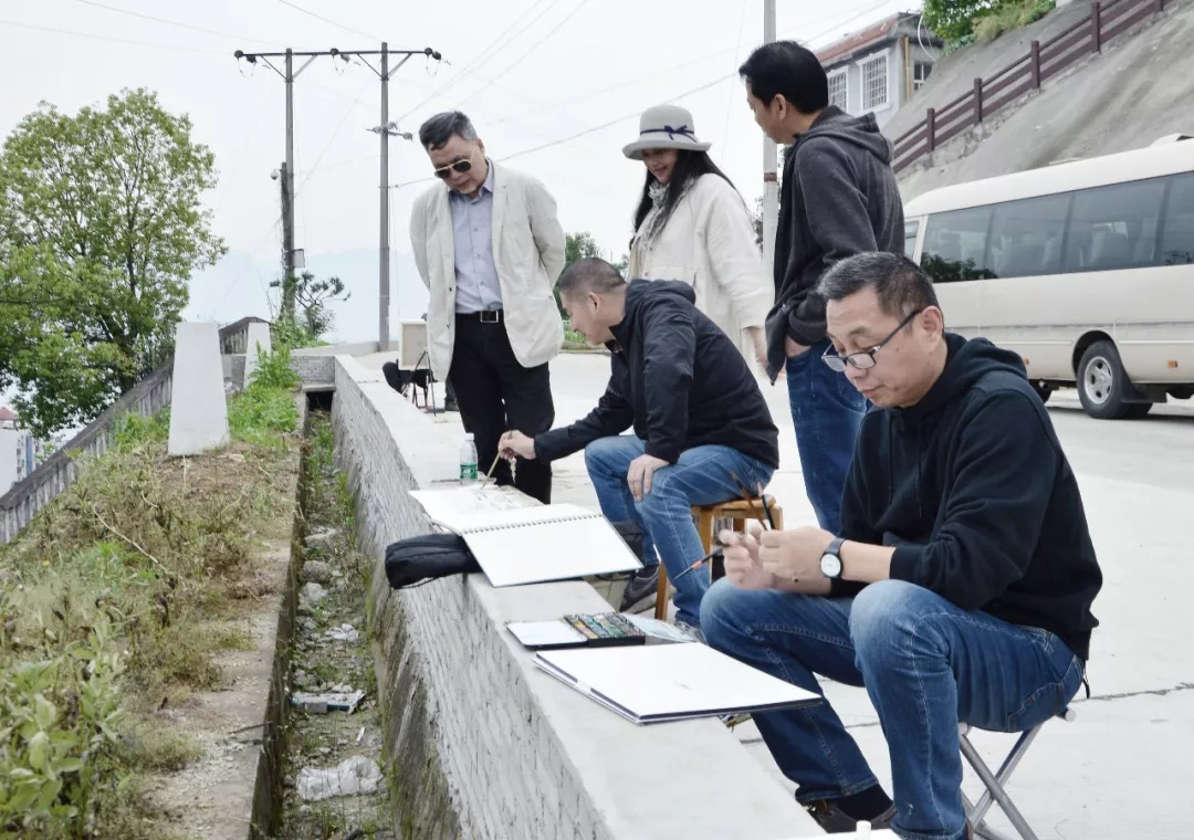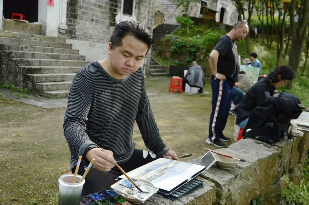 △湖北省美术院版画和水彩画创作室主任张漫写生现场