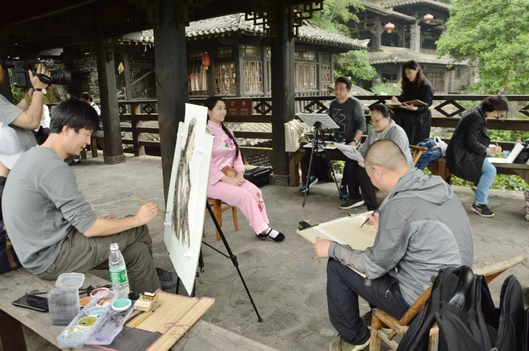 △艺术家们在太平溪镇写生