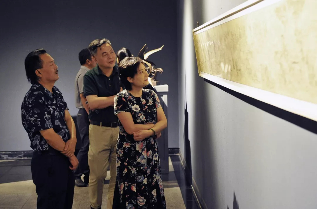 △湖北省文化和旅游厅党组书记、厅长雷文洁在肖丰院长,陈建中副院长,谢晓红副院长及著名雕塑家、省政府参事李三汉的陪同下参观展览