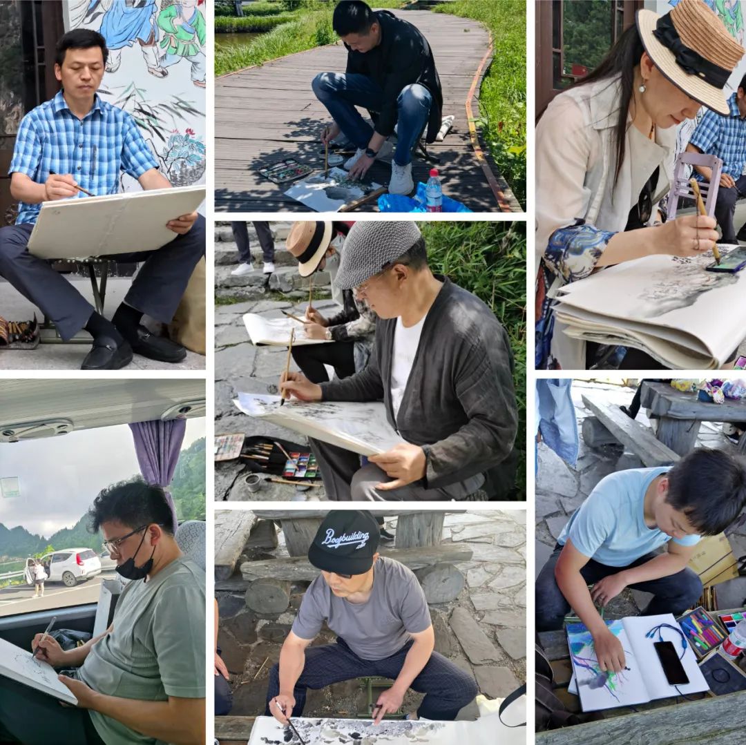 由文化和旅游部艺术司指导,中国国家画院、湖北省文化和旅游厅、湖南省文化和旅游厅、江西省文化和旅游厅共同主办的“喜迎二十大 壮美新画卷——乡村振兴·美丽乡村主题美术作品展”以及由湖北省美术院主办的平行展“荆楚回响——乡村振兴主题第三届湖北省画院优秀作品双年展”在武汉开展之后,湖北省文化和旅游厅邀请中国国家画院和鄂湘赣三省艺术家开展“乡村振兴主题美术创作调研采风活动”。7月14日至16日,中国国家画院副院长于文江、山水画所副所长王跃奎、创研规划处处长董雷及艺术家任赛、付振宝,长沙画院院长郭文光、张家界市书画院院长张立鼎、湖南省画院艺术家江哲、湖北省文化和旅游厅艺术处二级调研员彭蓉、湖北省美术院党委书记李和清等一行12人深入神农架开展采风写生和艺术交流活动。中国神农架素有“华中屋脊”之称,不仅是国家森林公园、国家湿地公园,还是世界地质公园、世界自然遗产。在短短三天的行程当中,采风团先后赴天燕景区、神农顶、大九湖和神农坛等地开展写生创作。艺术家们翻山越岭,徒步溪流,感受神农架之大美带来的心灵震撼,他们拿出随身携带的写生本,捕捉最能给他们带来灵感的湖光山色,用饱满的热情记录神农架的山川美景,以浓郁的笔墨速写神农架的自然风光,以无限的深情厚意表达对祖国大好河山和乡村振兴成果的礼赞。采风、写生对于艺术家来说是宝贵的体验和积累素材的有效方式,从眼中之景到心中之景再到画中之景,自然风光经过艺术家心、眼、手的转化,成为富有人文气息、以情动人的艺术作品。