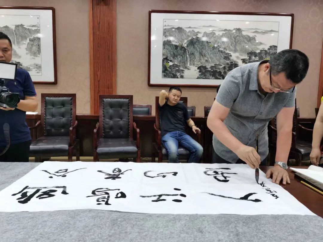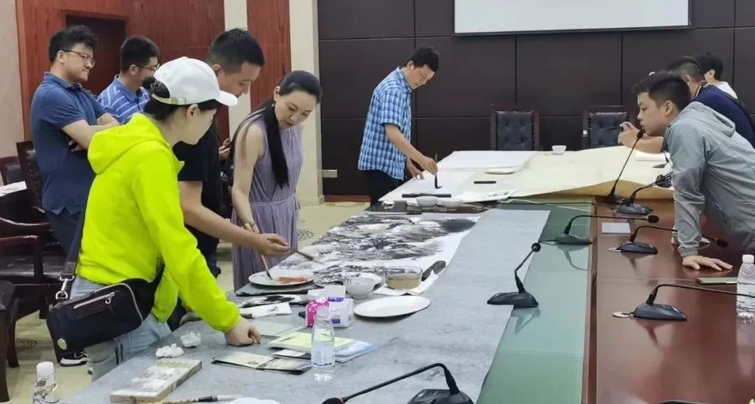 15日当晚,采风团艺术家举行“美术创作交流”。北京、湖南和湖北三地艺术家借此机会,纷纷泼墨挥毫,留下多幅精彩的书画作品。
