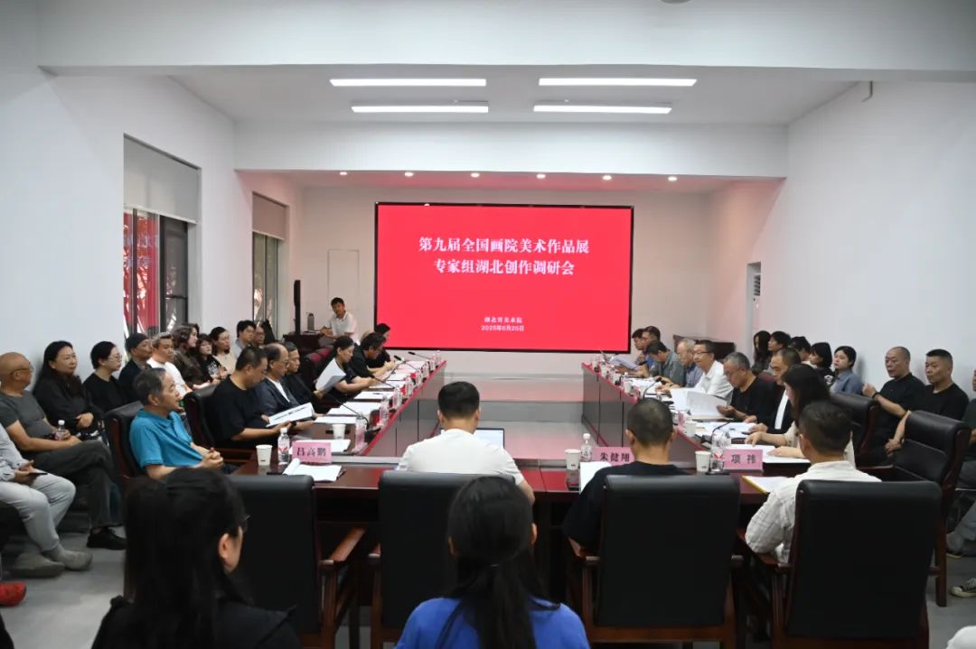 6月25日至26日,第九届全国画院美术作品展览专家组赴湖北开展调研指导工作,此为专家组调研第六站。25日下午,专家组抵达武汉后直接赶往湖北省美术院美术馆樱花讲堂召开“第九届全国画院美术作品展专家组湖北创作调研会”,观看部分拟申报“第九届全国画院美术作品展览”的作品及草稿电子版,26日上午,参观“荆楚回响——第四届湖北省画院优秀作品双年展”展览,与到场参展作者现场指导并交流意见。