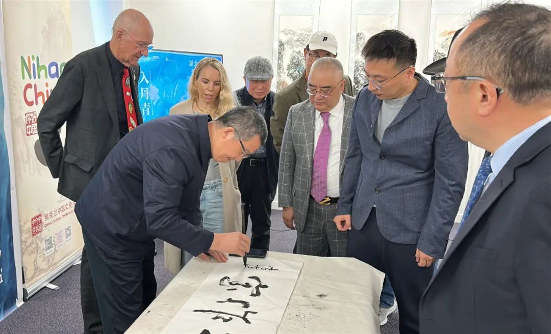 为贯彻落实习近平总书记“更好推动中华文化走出去”的指示精神,扩大知音湖北文化和旅游宣传推广力度,促进湖北省与新西兰文化艺术交流,推动两地美术领域互鉴互融,湖北省美术院于2025年7月27日至7月31日在新西兰奥克兰、基督城成功开展“知音湖北入丹青”系列文化交流活动,以书法为媒,以绘画为介,架设起湖北省与新西兰文化交流的友谊桥梁,取得丰硕成果。