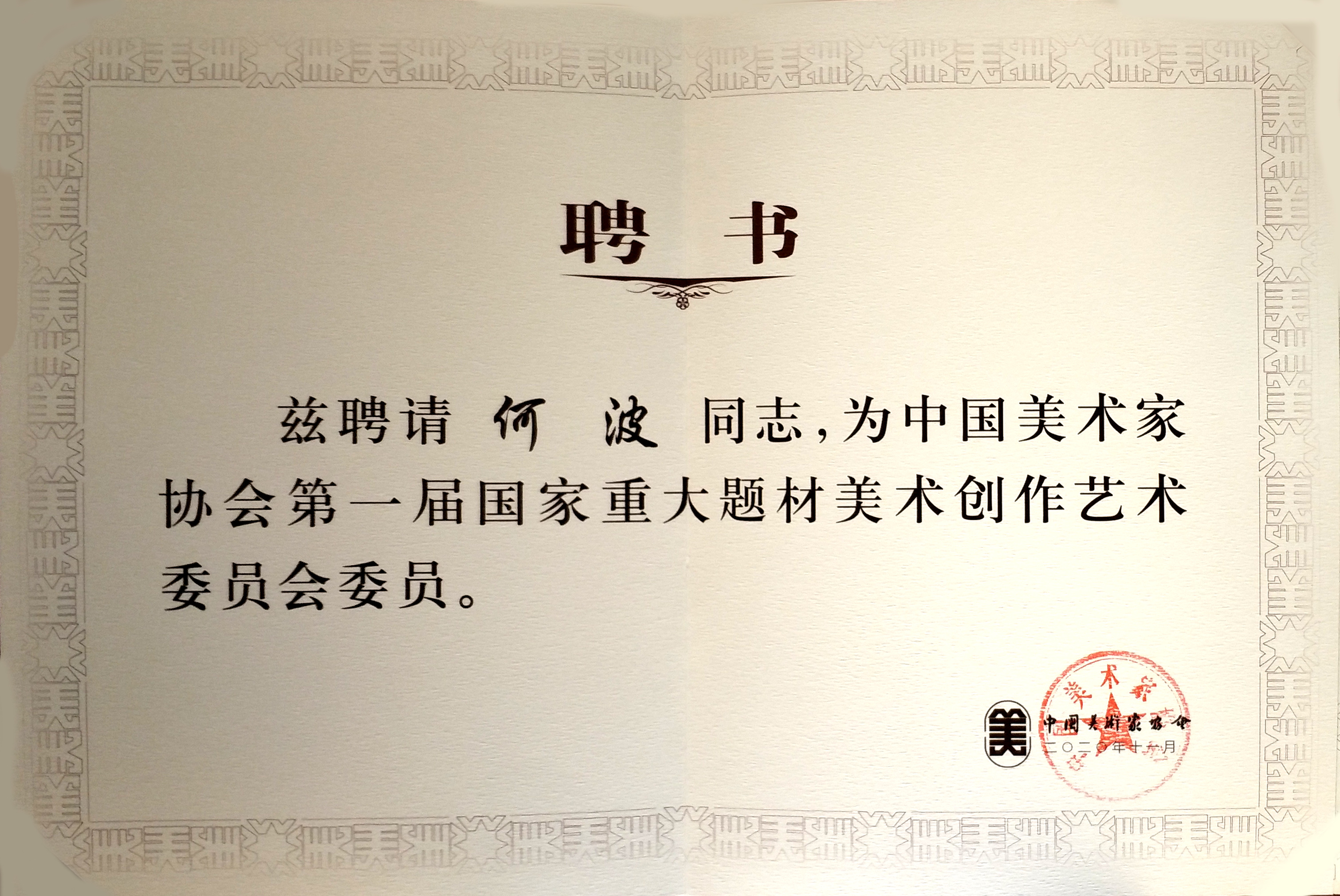 我院艺术家何波荣聘中国美术家协会第一届国家重大题材美术创作艺委会委员