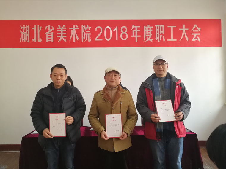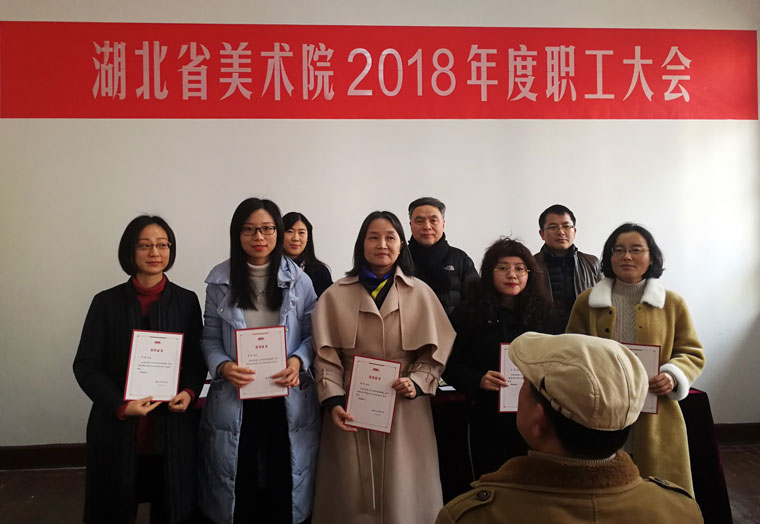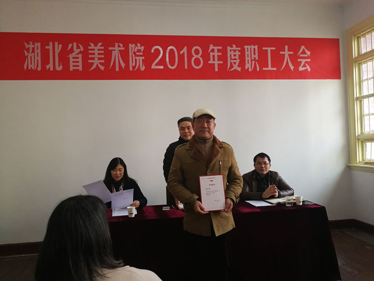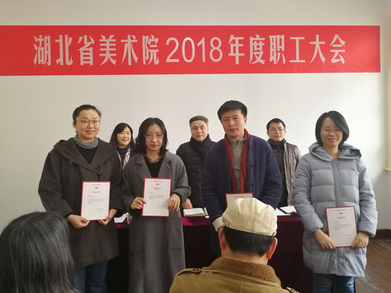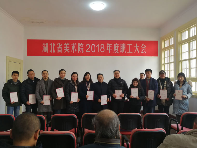谢晓红副院长宣读了2018年度红旗党支部(院第一党支部)、优秀党员(5人)、先进部门(办公室、创作交流部、美术馆)、优秀职工(7人)、创作成果奖(16人)、学术成果奖(1人)的表彰决定,院领导为获奖人员颁发了荣誉证书。2018年是党的十九大精神落地生根的第一个年头,在厅党组的坚强领导和科学决策下,省美术院围绕中心,服务大局,圆满完成各项工作任务,取得较好成绩。