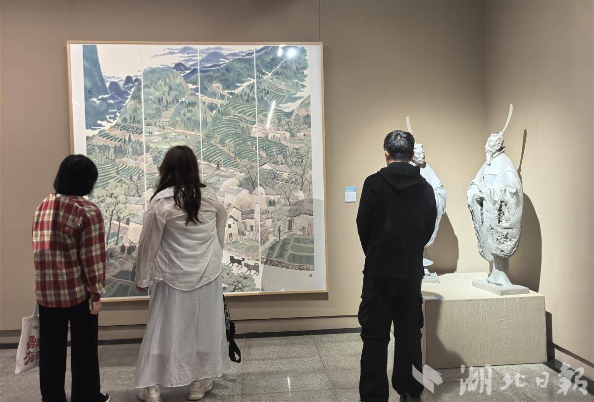 此次展览画种丰富,涵盖国画、版画、雕塑等多种类型,从革命精神的赤诚礼赞,到江豚微笑的生态讴歌;从荆风楚韵的深沉回望,到城乡新貌的蓬勃展现,参展艺术家们以深情的笔触,共同构建出知音湖北“宜居、宜业、宜游”的生动图景,传递出这片土地开放包容、奋发向上的精神气质。