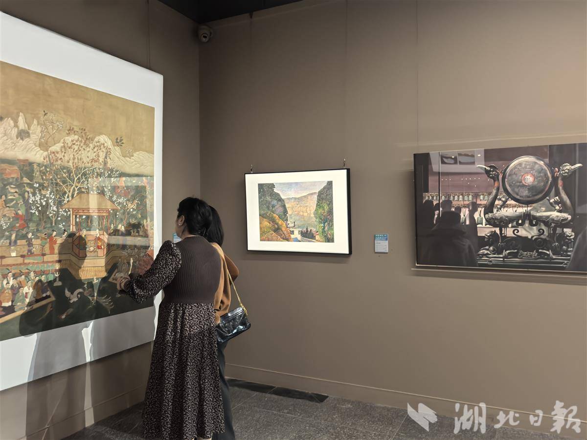 除了新创作品外,展览还通过邀约、征集、遴选了一批精品力作。周韶华的中国画《不尽长江万古流》、李乃蔚的中国画《土家织女》、谢晓红的中国画《古琴台》、方正的中国画《大地》、王志新和胡新桥的版画《红色工运在武汉·纪念京汉铁路大罢工100周年》等,从不同角度讴歌“知音湖北”的别样风采。