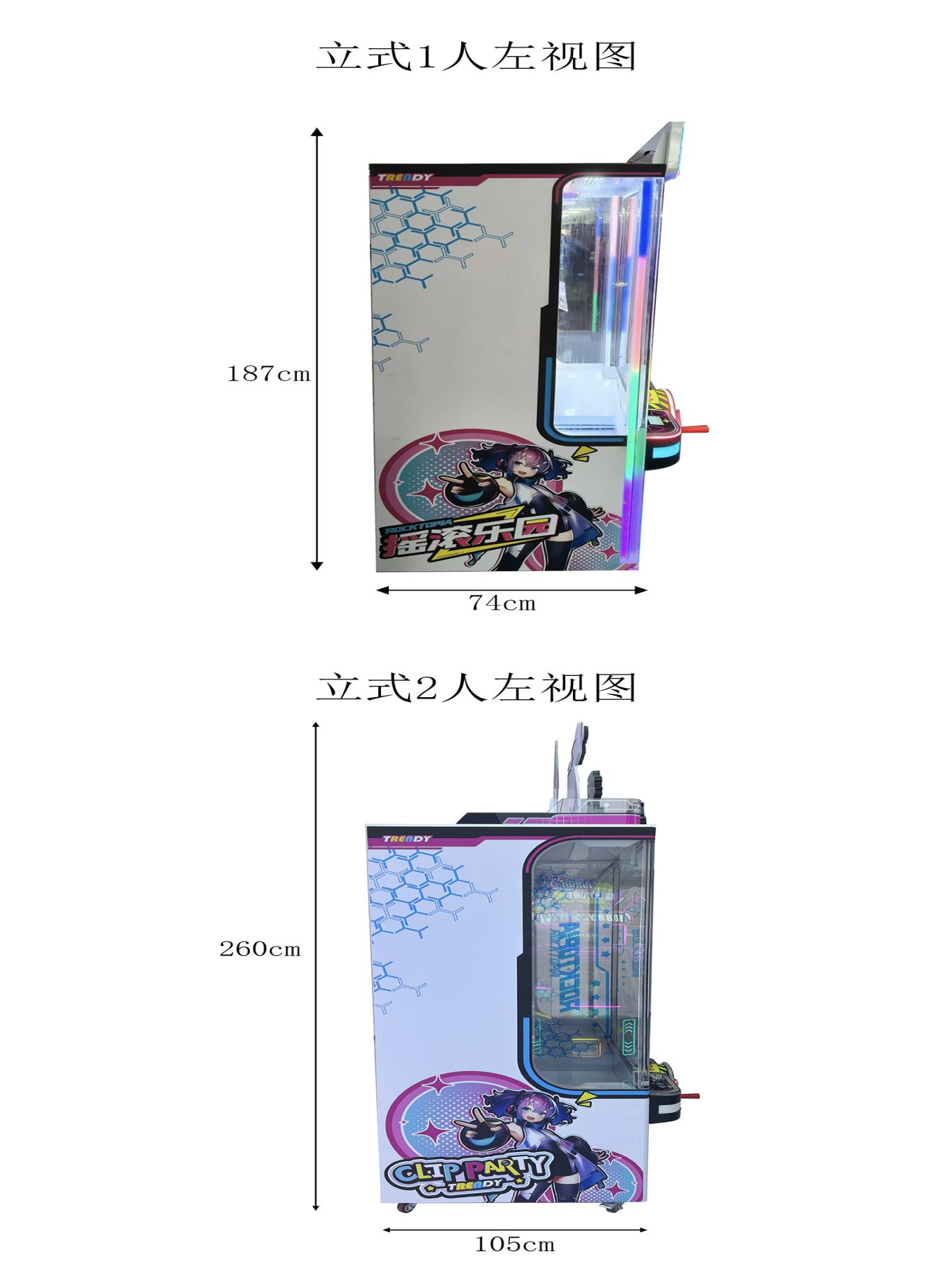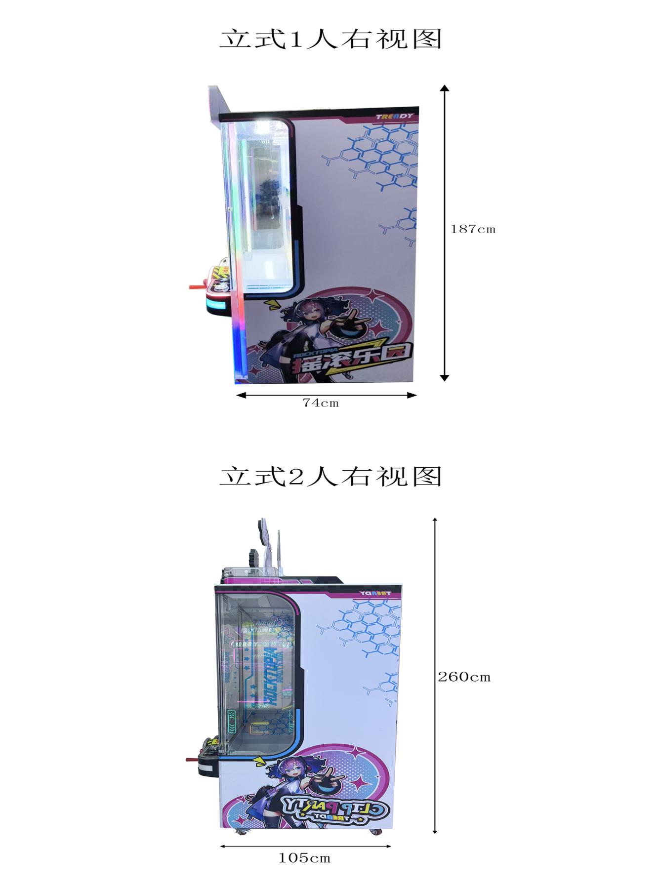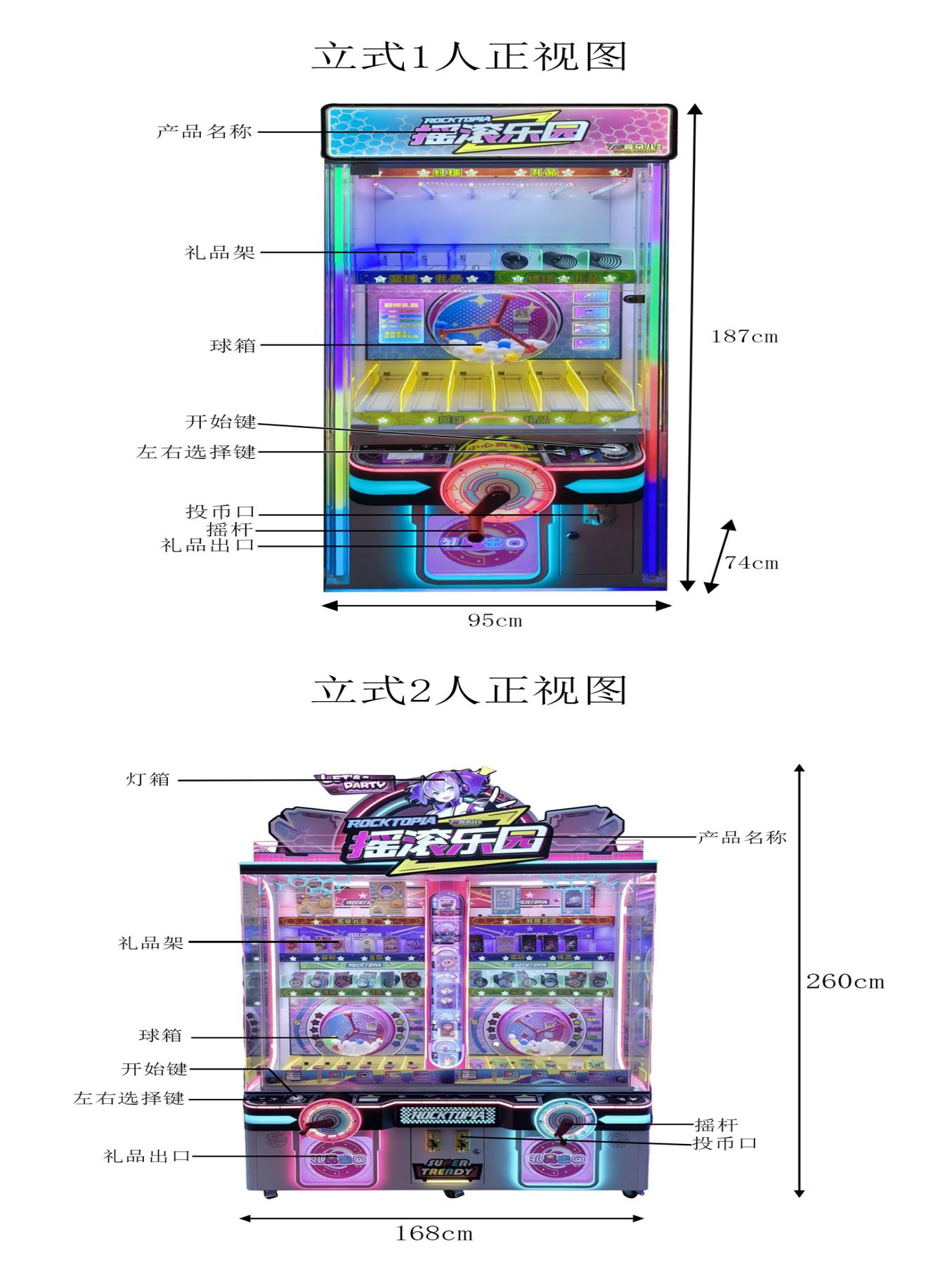 游戏内容简介:《摇滚乐园(立式)》是一款全能摇球类礼品机,本机支持合法合规的管理系统,也可通过打开微信或支付宝扫一扫管理系统卡头二维码/屏幕二维码/实体二维码扫码支付投币或投入实体游戏代币等方式获得对应的电子竞猜分数彩票票数后玩家即可开始游戏。本机适用于网咖、竞技馆、动漫城、商超、台球俱乐部等符合经营许可的使用场所。玩家投币后按下开始键摇动摇杆获取幸运彩球。礼品分为:绿、蓝、红等级,摇中对应颜色的彩球即可解锁对应颜色等级的礼品,中奖后玩家可通过控台上的左右键选择当前等级的心仪礼品,等待礼品掉落在取物口获取,其中白球为累计奖,玩家在游玩中累计摇中5颗白球即可开启幸运转盘,幸运转盘有概率抽中再摇一次和所有等级的礼品,若过程中摇中其他颜色的彩球之前累计数则清零。游戏结束后,玩家可用获得的电子分数彩票票数手动选择退实物彩票/电子彩票,到店面吧台用实物彩票/电子彩票兑换精美礼品。玩家也可以选择退电子彩票直接返还到玩家手机上,也可以用手机扫卡头/屏幕二维码领取电子彩票,都可以链接到电子商城上选择心仪的礼品使用电子彩票兑换,填写正确的收货地址,商城将礼品通过快递送达。需注意,设备礼品不得销售香烟,并在设备显著位置张贴不得销售香烟的提示。同时为了“顺应“互联网+”发展趋势,鼓励娱乐场所与互联网结合发展,实现场内场外、线上线下互动,增强娱乐场所体验式服务”的要求,本设备可以通过物联网技术把实体游戏游艺设备的游戏内容推送到移动端供客人游玩,仅限于从实体设备所在的公众号、小程序、APP及网络推广平台入口进入的玩家游玩。