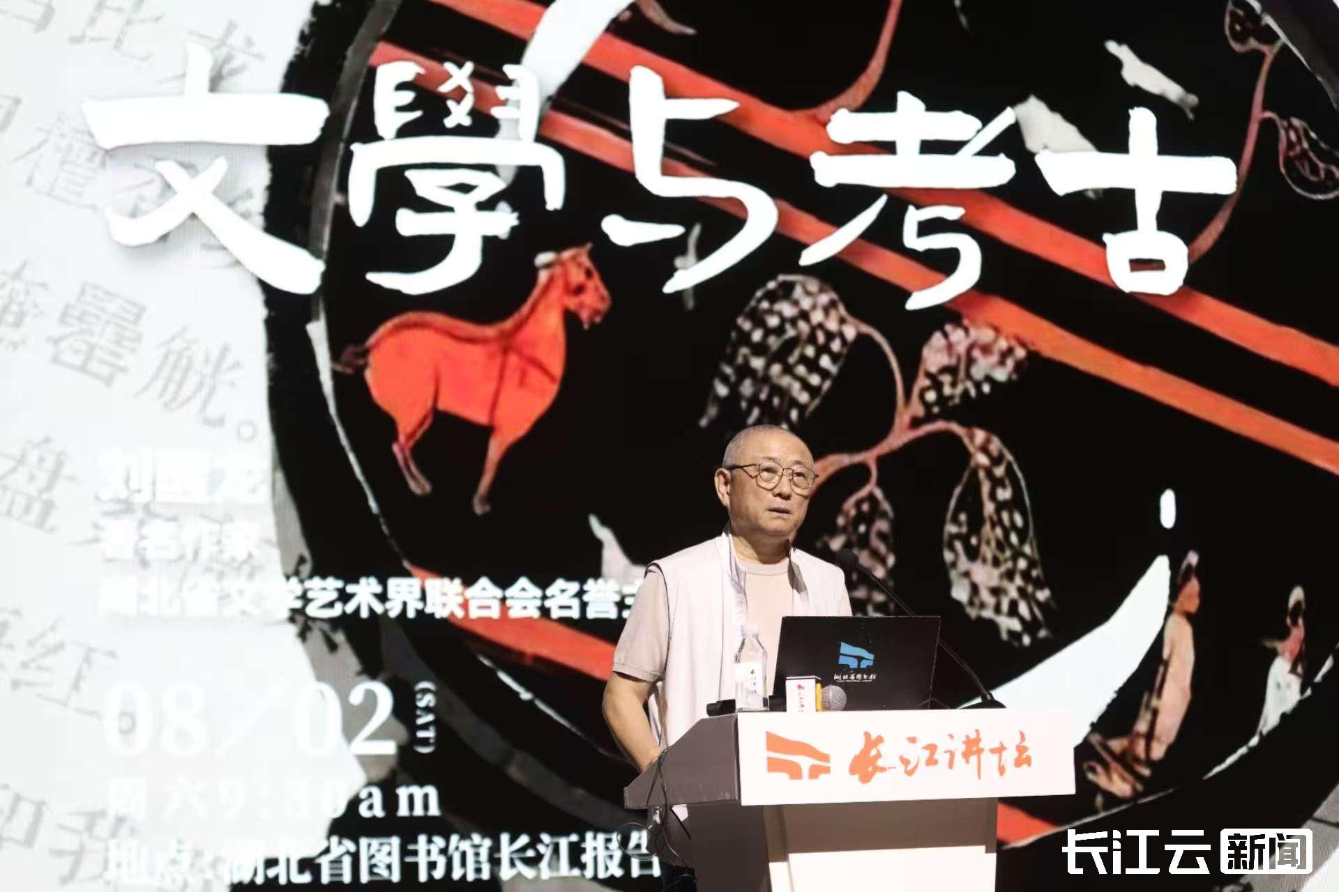 今天(2日)上午,长江讲坛文学讲座月首场讲座在湖北省图书馆举行,由著名作家、湖北省文联名誉主席刘醒龙主讲《文学与考古》。