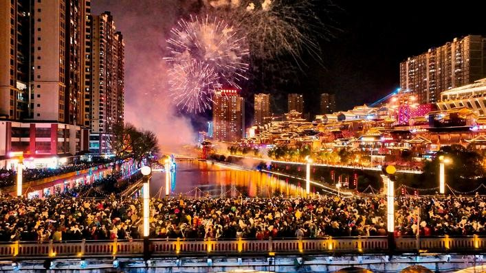 年货市集的喧腾、非遗庙会的热闹、国潮演艺的璀璨、烟火无人机秀的绚烂,勾勒出湖北春节的独特韵味。从赶大集备年货的市井烟火,到家庭团圆宴的温馨美满,从非遗传承人的匠心展演,到主题乐园的沉浸式体验,荆楚大地处处洋溢着“家国安康”的新春气息。