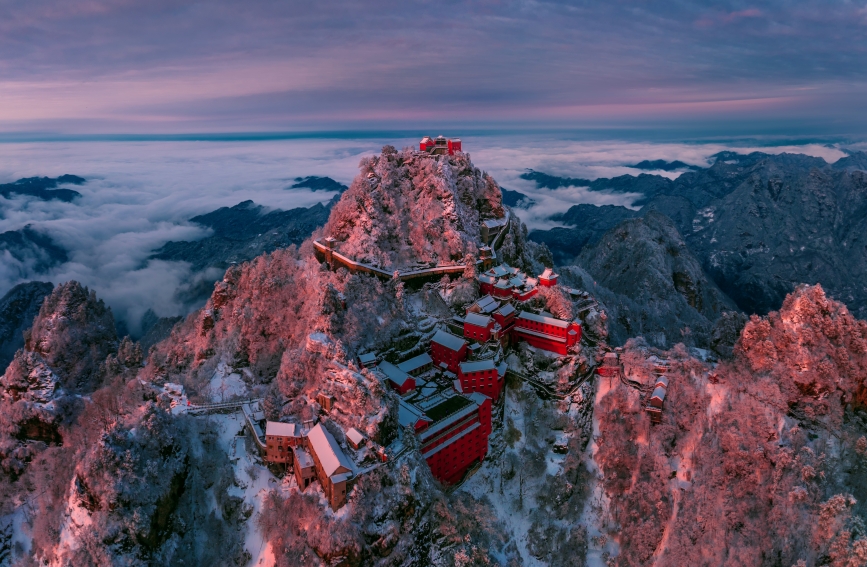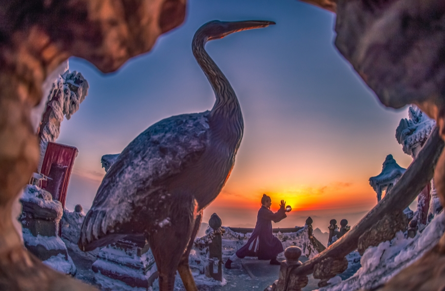 天地铺宣,武当泼墨。冰雪为笔,影像为诗。近日,世界文化遗产——十堰武当山“冬韵”主题摄影展入围作品揭晓。本次展览作品视角多元,意蕴悠长,既有雪霁初晴的雾凇云海,也有古建冰雪映衬下的静谧神韵,更不乏“武当一梦”演艺园区、太极之夜文旅街区等旅游业态的生动呈现。以光影艺术全方位、多角度地展现了武当山冬日的独特魅力与深厚文化底蕴。(甘秋娟)