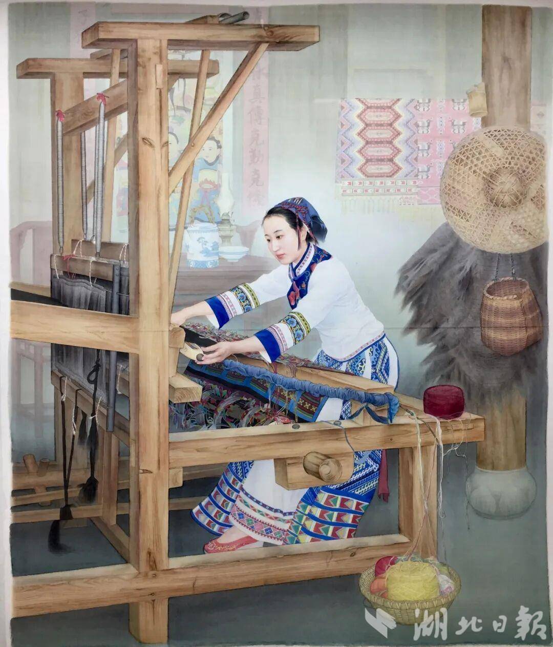 除了新创作品外,展览还通过邀约、征集、遴选了一批精品力作。周韶华的中国画《不尽长江万古流》、李乃蔚的中国画《土家织女》、谢晓红的中国画《古琴台》、方正的中国画《大地》、王志新和胡新桥的版画《红色工运在武汉·纪念京汉铁路大罢工100周年》等,从不同角度讴歌“知音湖北”的别样风采。