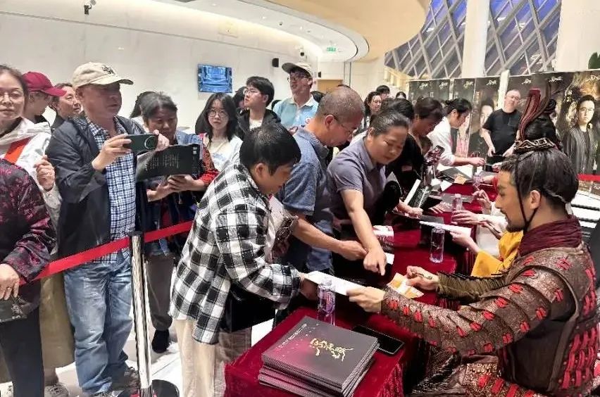 散场人流在签售台前拧成光的绸带,竹简状卷起的门票、裹着丝帕的老钢笔、沾着金箔的精致妆造,随队伍蜿蜓流淌。