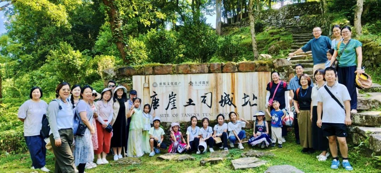 研学首站,大家走进世界文化遗产——唐崖土司城遗址。在古老的城墙与遗迹间穿行,仿佛穿越时空,指尖触摸着历史的厚重脉搏。