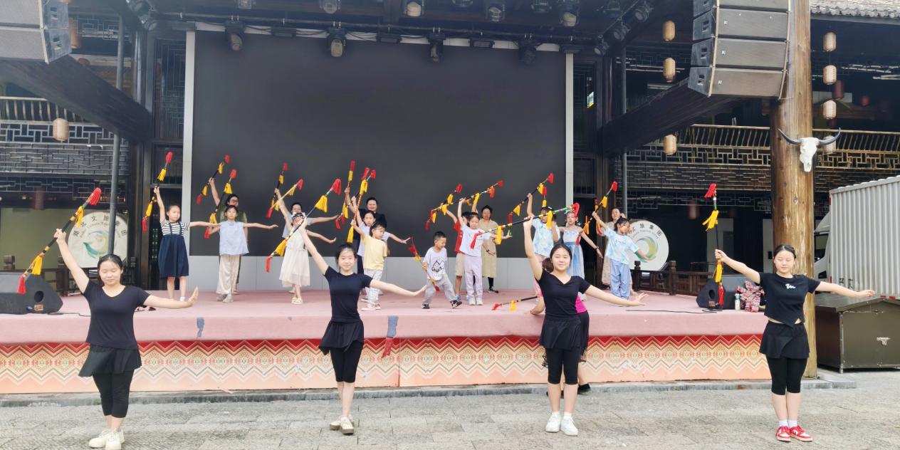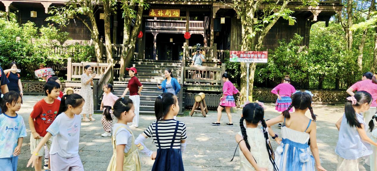 在森林剧场,精彩的土苗歌舞轮番上演,令人陶醉。研学家庭拿起土家梆鼓,敲击出非遗乐器的独特节奏。非遗藤编课堂上,大家动手学习传统技艺,感受匠人智慧。夜幕降临,熊熊篝火燃起,城乡家庭手拉手共跳热情洋溢的摆手舞,欢声笑语响彻山谷。
