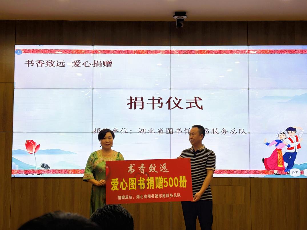 (图片:湖北省图书馆志愿服务总队“书香致远”项目爱心图书捐赠500册)
