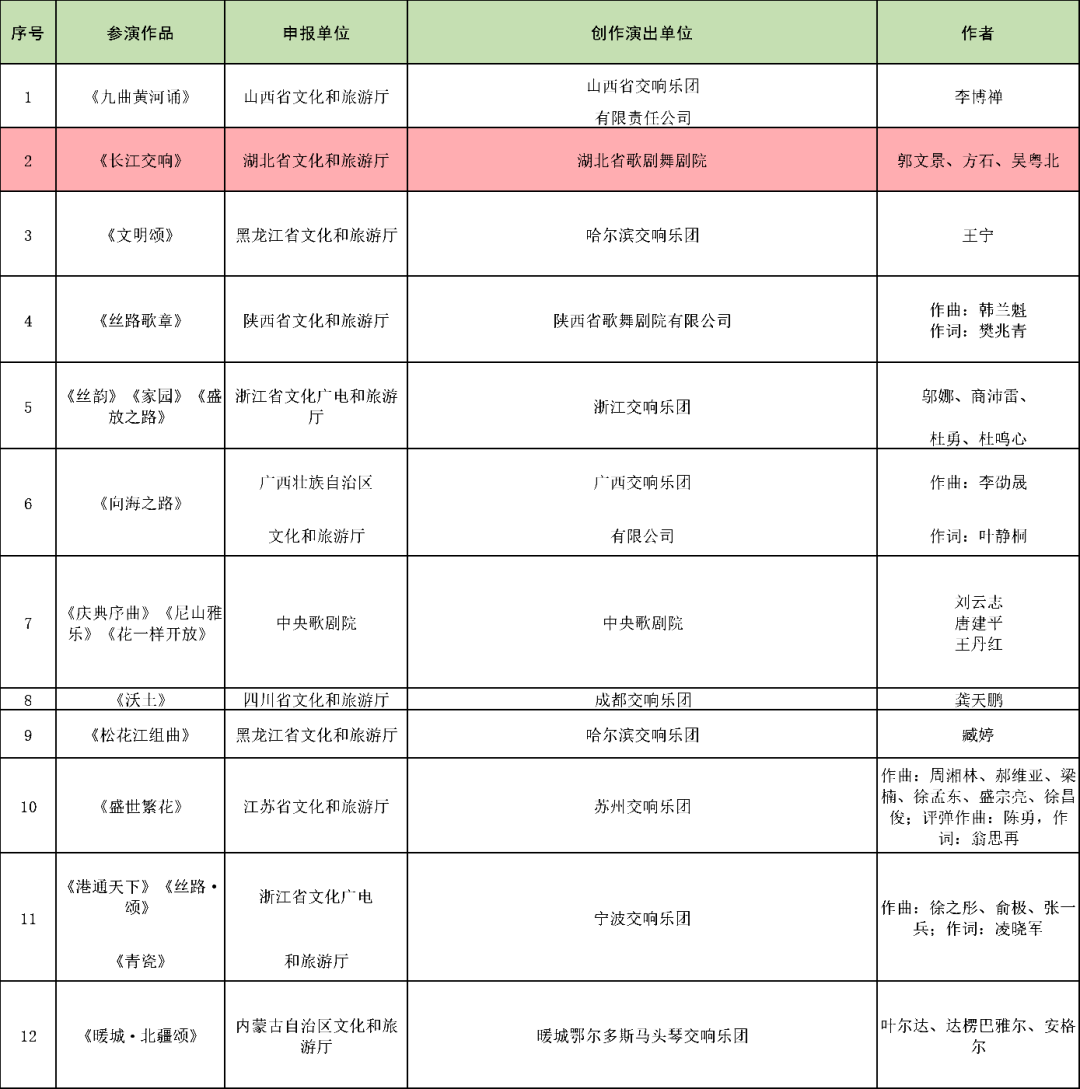 二、第二届全国优秀交响乐作品展演参演作品名单