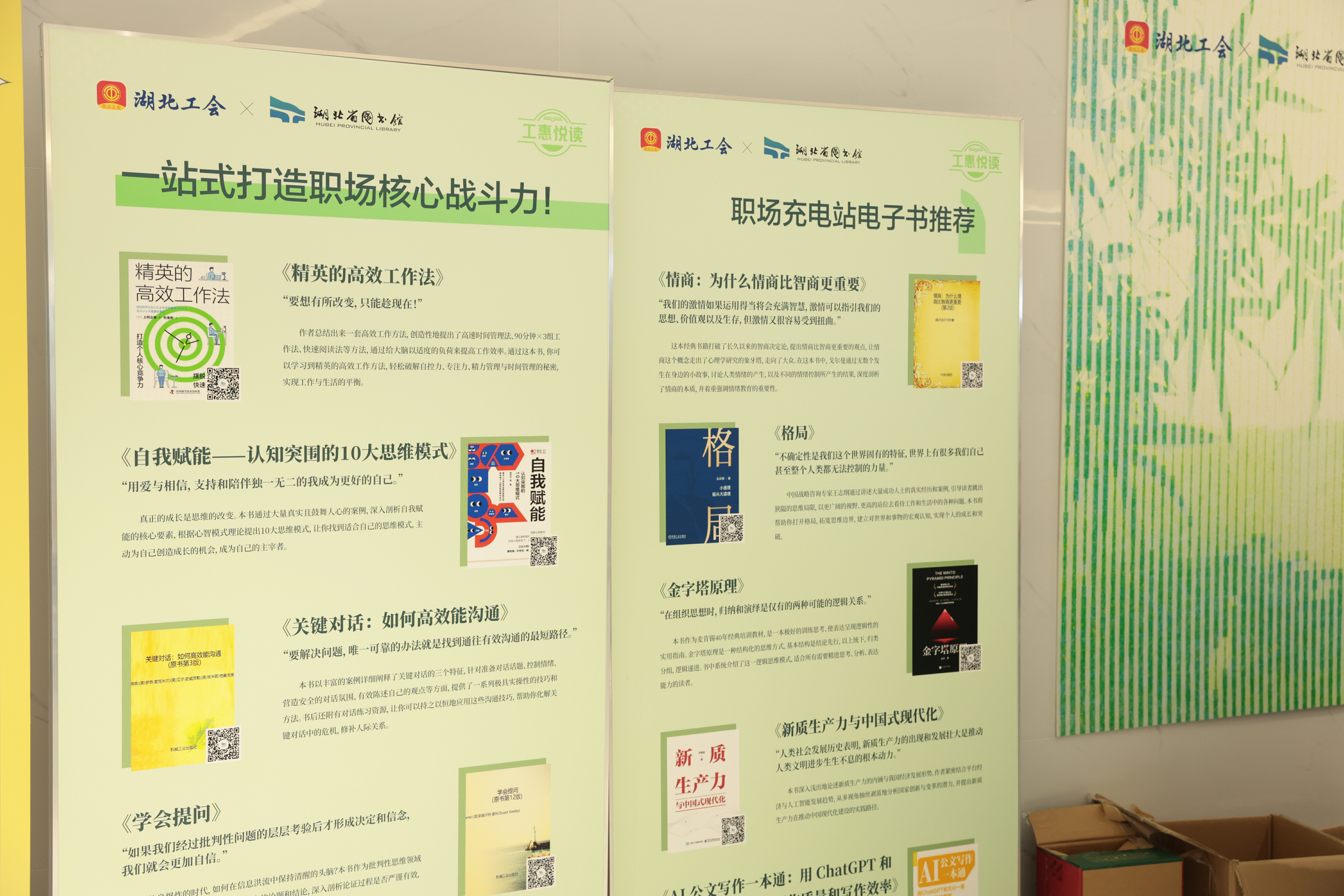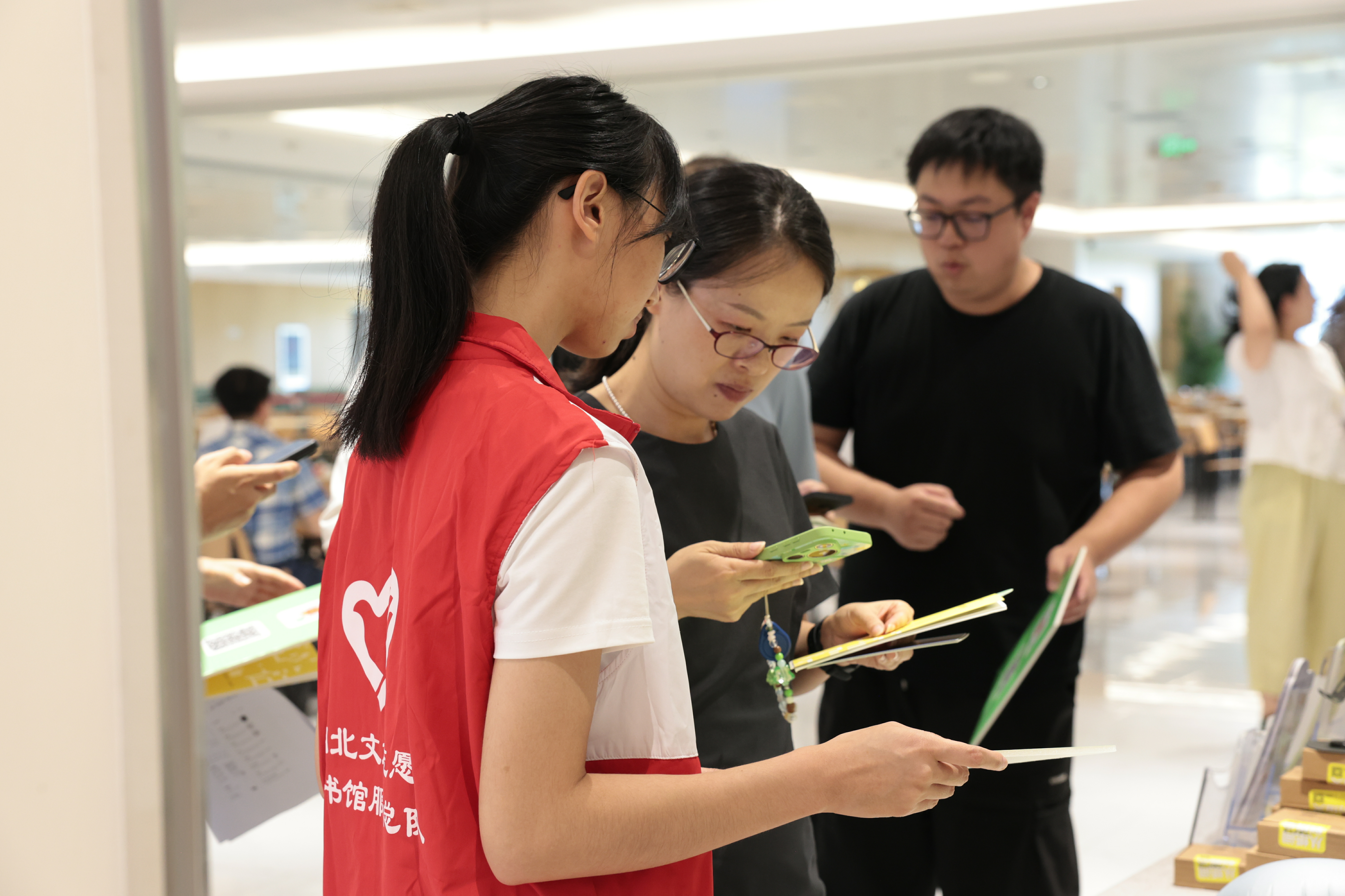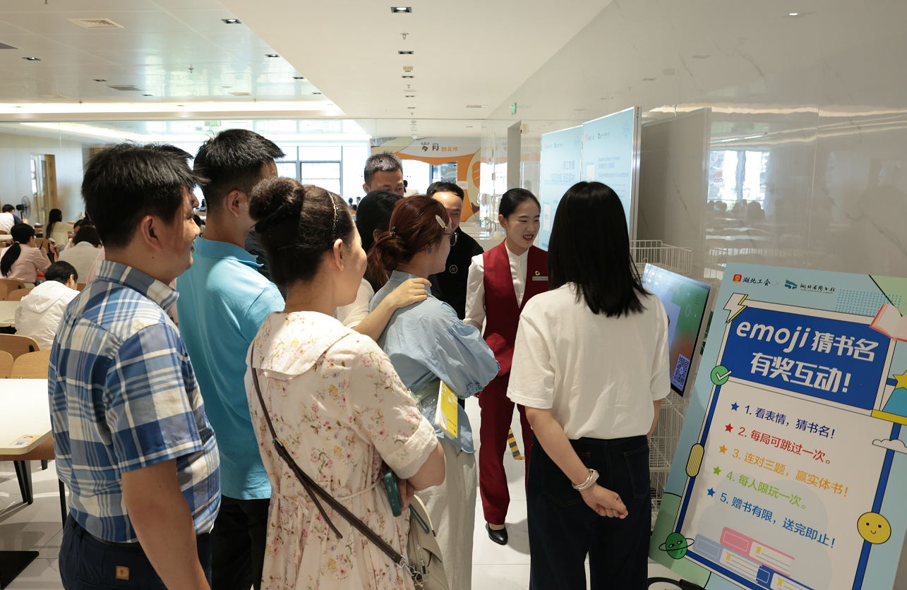 本次创新服务同步推出“职场+亲子”共读服务模式。员工赋能区展出的《AI公文写作一本通》《新质生产力与中国式现代化》等精选职场类电子书扫码即可阅读;热闹的“emoji 猜书名”游戏区吸引了许多热爱阅读的职工参与,通关者还获得《深度工作》《笑熬职场》等实体书籍;豆瓣高分电子书推荐区,《你当像鸟飞往你的山》《苏东坡新传》等经典作品扫码就能利用碎片时间阅读。