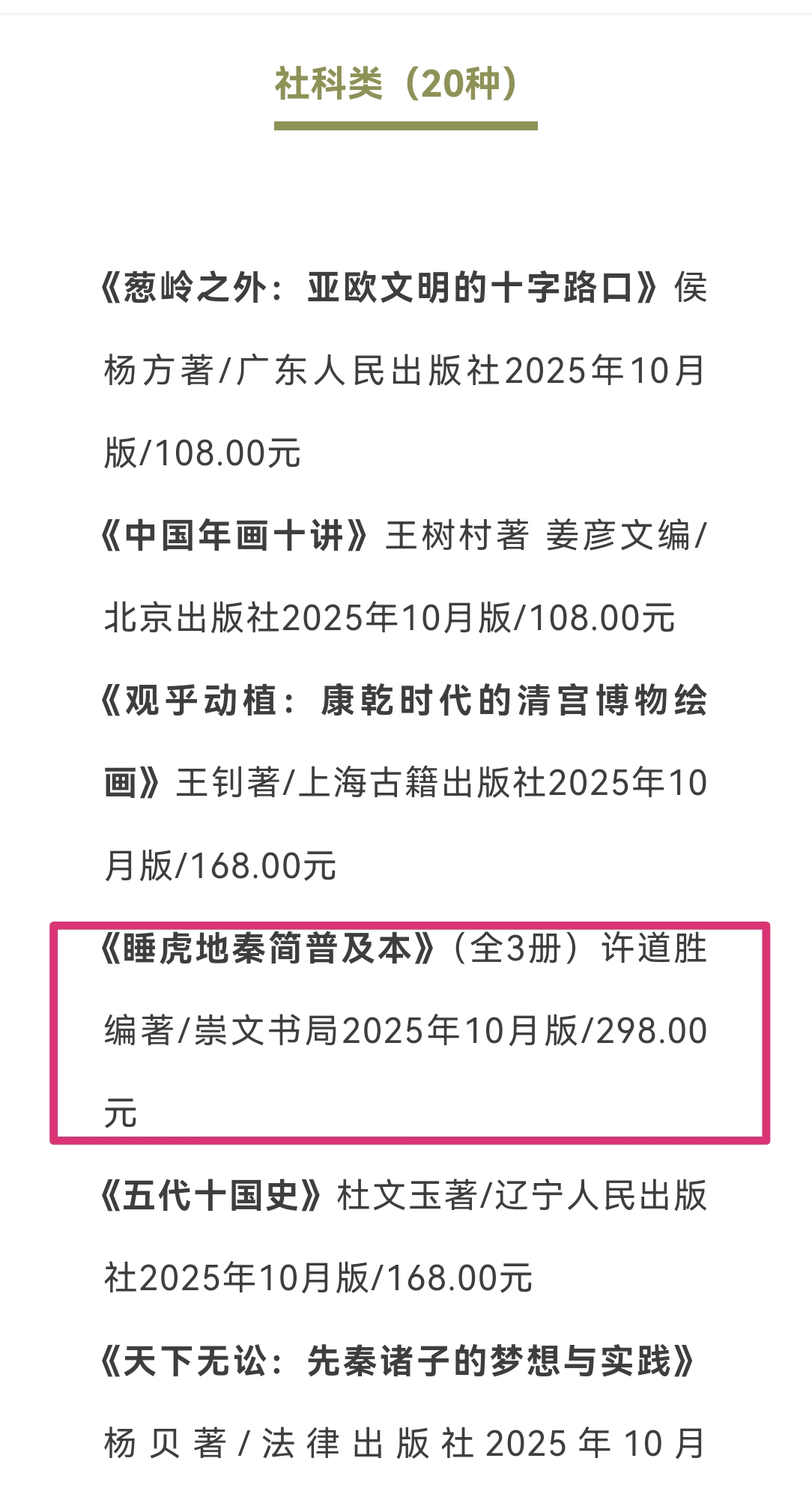 《睡虎地秦简普及本》入选《中国出版传媒商报》2025年第四季度影响力图书