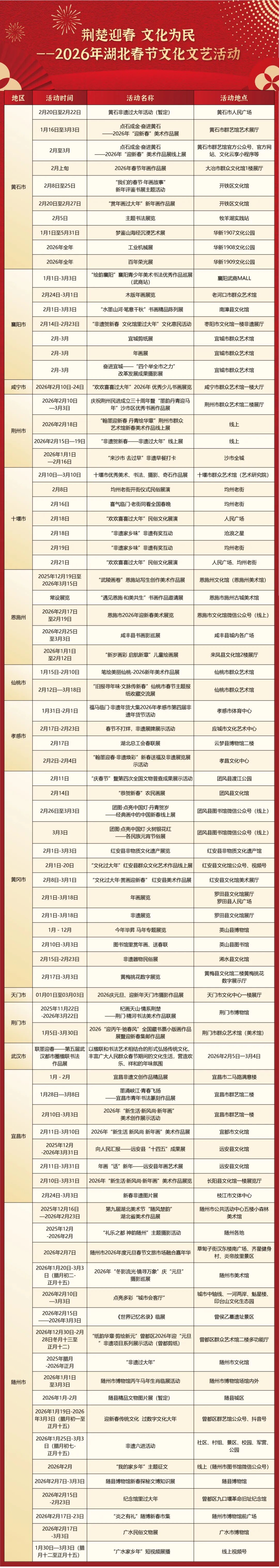 600+场!湖北春节文化菜单出炉