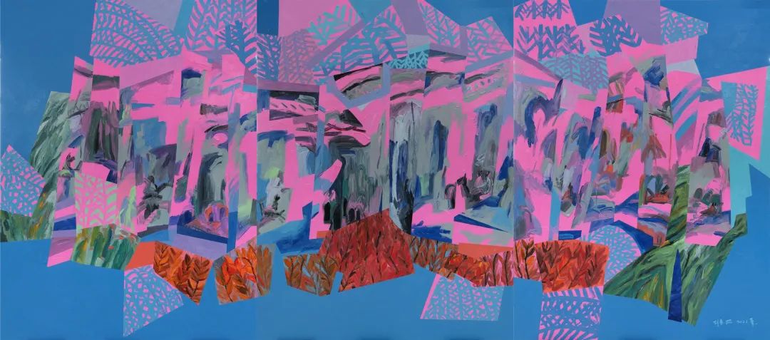 《秘密公园》其间的抽象是一步一步走来的,对颜色的驾轻,对内容和情绪的取舍,那种肌理与厚度和由内而外散发出的冲击感,不仅仅来自于她的艺术史背景,更是一个当代艺术发展历程的亲历者摸爬滚打的时间。当《新富春山居图》回归到色块之间最简洁的表达时,这是王清丽从繁琐走向简洁,人生的加法和艺术上的减法,阅历越丰富,表达就越简洁。看似矛盾,实则是对于学院及经典束缚的挑战,对于规训、约束的质疑,这也是她近期视觉表达的一个精神内核:自由的品质。无论是从传统还是当代走来,对于一个艺术家来说,最重要的两个品质就是身份的自由与精神的独立。很显然,王清丽捕捉到了。