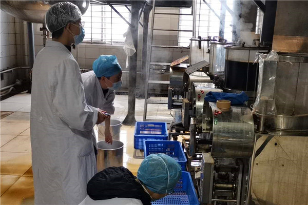 非遗传承人张义生的团队正在生产车间制药,湖北省文化和旅游厅供图。