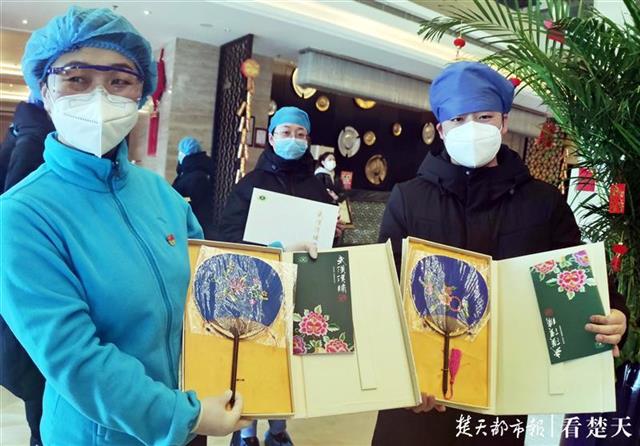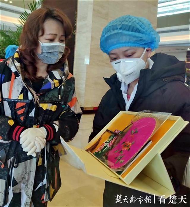 武汉市江汉区委代表、内蒙古援鄂医疗队代表、武汉市阳光酒店工作人员、驻点区文旅局保障专班人员、汉绣代表性传承人任炜等参加了活动。武汉方面代表向内蒙古援鄂医疗队表达了真诚的节日祝福和感谢,并送上了节日礼物,其中,一把把精美的汉绣扇格外引人注目。它由汉绣代表性传承人任炜精心制作。任炜说,扇面绣图是她手工一针一线刺绣的,每把扇子绣着不同的春天花卉图案,它们是吉祥的象征,表达着武汉人民对白衣战士、对巾帼英雄的敬意。