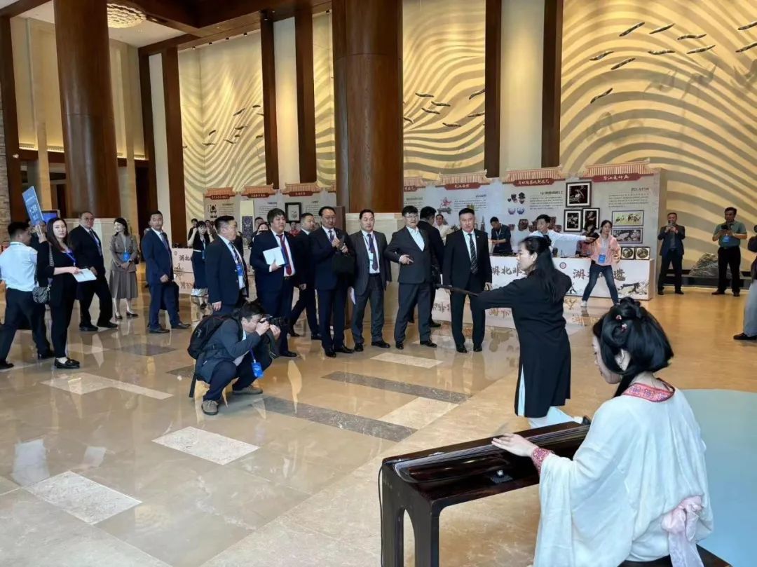 活动现场,一曲悠扬婉转的古琴演奏《流水》,饱含着“高山流水遇知音”的美好寓意,向远道而来的宾客表达了诚挚的欢迎。伴随着优美的琴音,行云流水、动静结合、气势如虹的武当武术表演,彰显了中国功夫的风采和神韵。云梦皮影戏展演区,一段惟妙惟肖、活灵活现的《武松打虎》表演,令现场高潮迭起,喝彩连连,点燃了大家对荆楚非遗的浓厚兴趣。