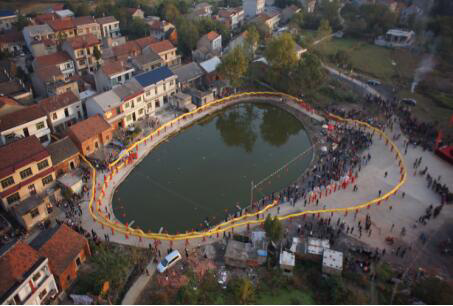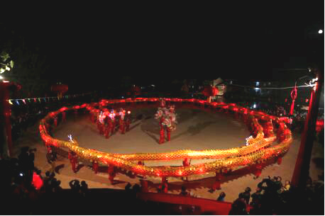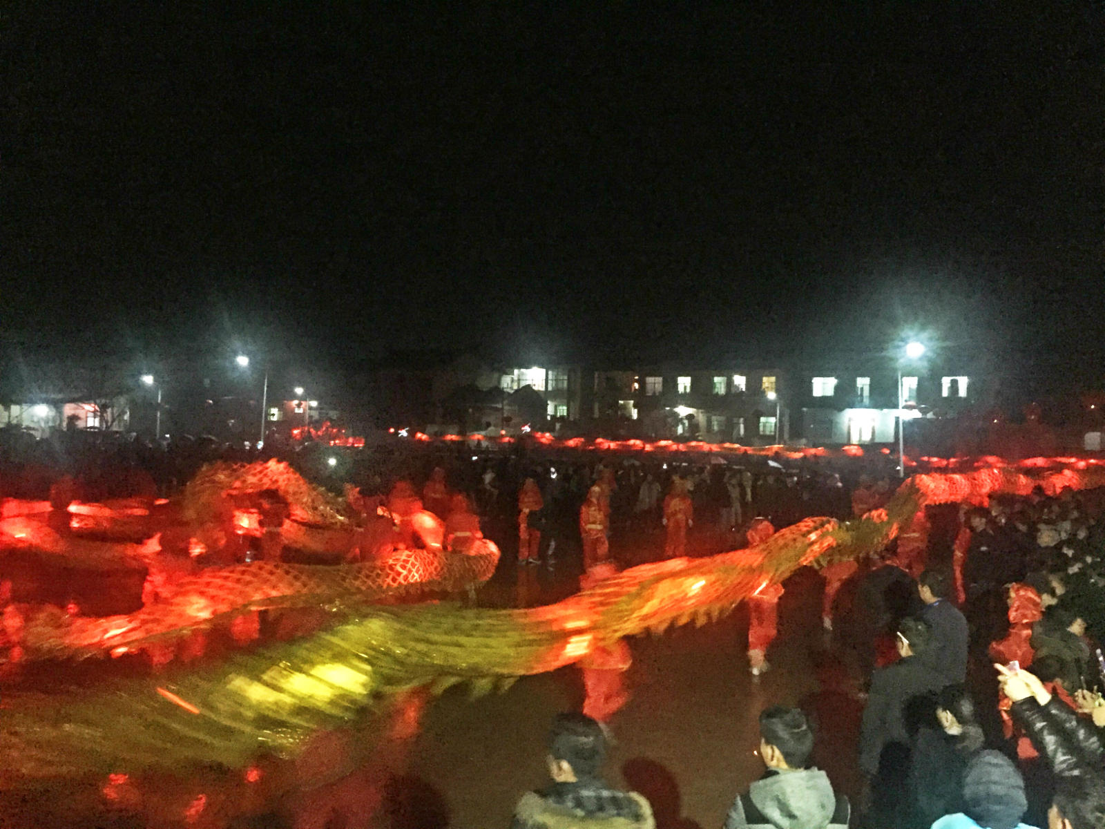 正月初九的黄石汪仁镇王贵村,沉浸在一片烟花炮竹声中,三条“火龙”穿梭在汪仁镇的大街小巷,场面颇为壮观。