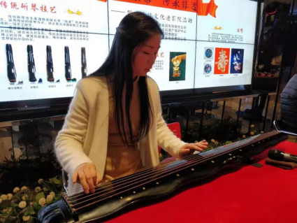 “八音之中,惟丝最密,而琴为之首。”几千年来,中国文人雅士视琴为道,无不以精通音律、熟谙琴艺为贵。当浑身散发古典气质的古琴演奏小姐姐出现在活动现场,瞬间就圈粉无数。琴弦之上,十指挑拨之间,优雅的古琴旋律时而幽咽呻吟,时而柔情倾诉,将众人带入美妙的琴音世界。