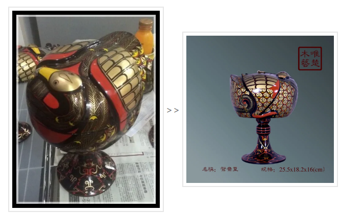 △ 楚式漆器髹饰技艺项目网店对产品图进行重新拍摄和制作(左图为过去,右图为现在)