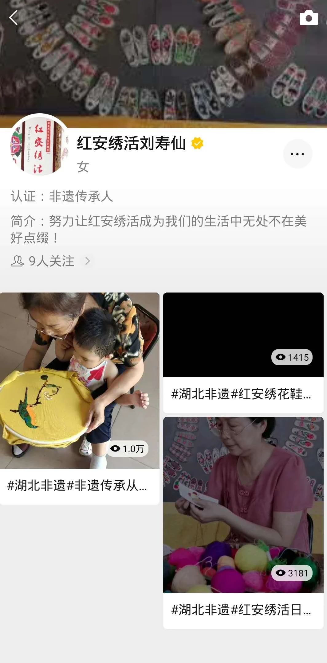 △ 红安绣活国家级代表性传承人刘寿仙在微信视频号上的最新作品播放量已突破1万次