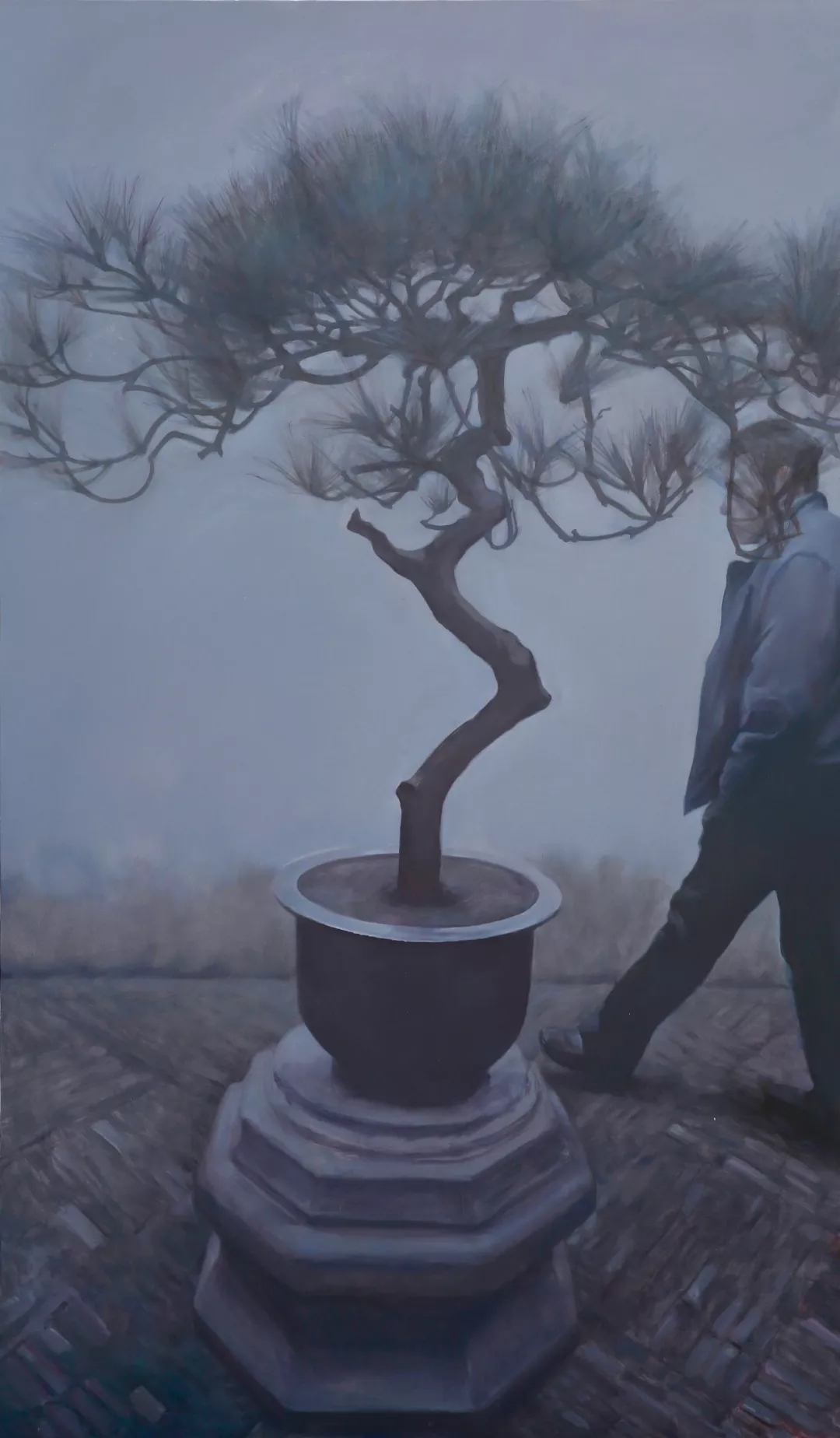 △肖丰《盆栽松》布面油画 190×110cm 2018年